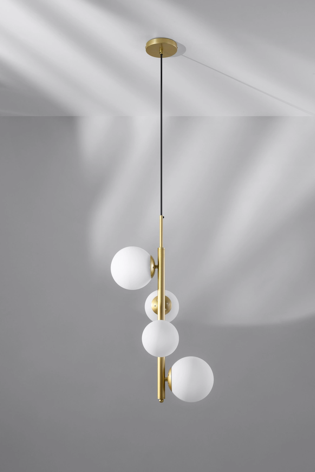 Závěsné svítidlo Cordel zlaté 4-bodové od značky CANDELLUX je kombinací moderního designu a elegance, která skvěle doplní obývací pokoj, jídelnu nebo ložnici. Čtyři bílé skleněné stínidla spolu se zlatou, kartáčovanou stropní základnou vytváří výrazný prvek v každém interiéru. Díky kompaktním rozměrům (šířka 32 cm, výška 120 cm) je ideální jak nad jídelní stůl, tak i do centrální části místnosti.