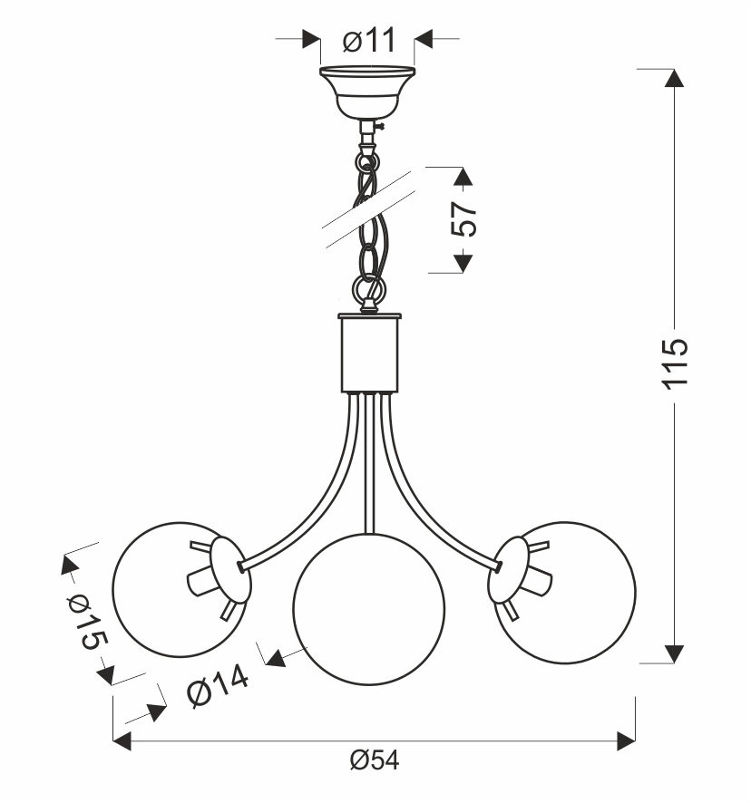 • Tři světelné zdroje (E14) – silné a rovnoměrné osvětlení