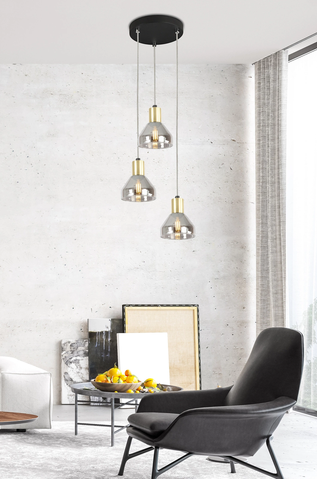 Závěsné svítidlo Gregory od značky Candellux je kombinací industriálního stylu a moderního designu. Vyrobené ze skla a kovu v hluboké černé barvě, s třemi stylovými stínidly s kouřovým efektem, dokonale poslouží jako centrální stropní lampa do obývacího pokoje, jídelny nebo nad jídelní stůl. Kompaktní šířka 28 cm a výška 120 cm dělají z tohoto modelu ideální volbu do interiérů, kde záleží jak na vizuálním dojmu, tak na funkčnosti.
