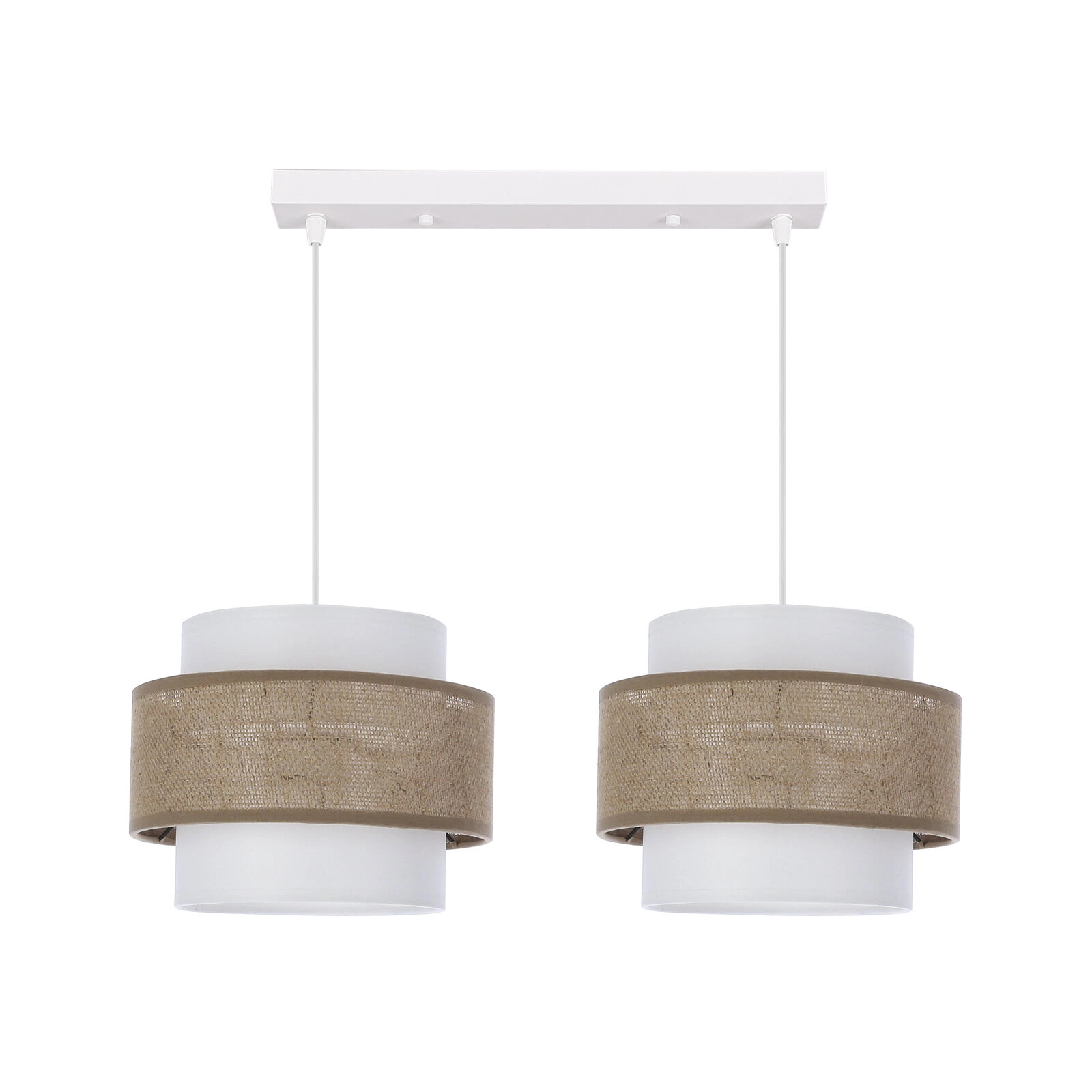 Jutová závěsná lampa bílá 2x40W E27 stínidlo bílá+béžová