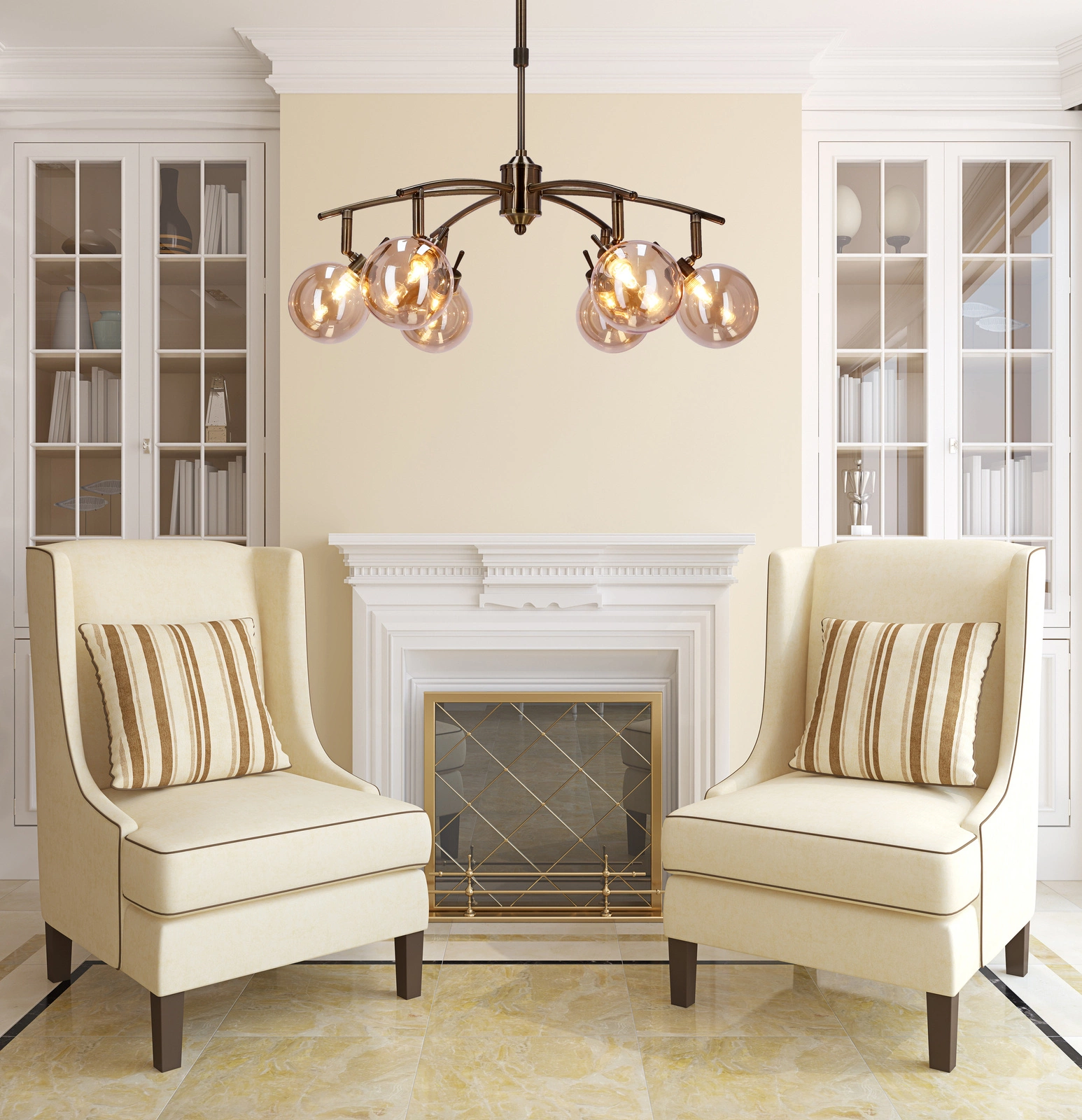 - Jantarová skleněná stínidla – teplá barva světla a elegantní vzhled