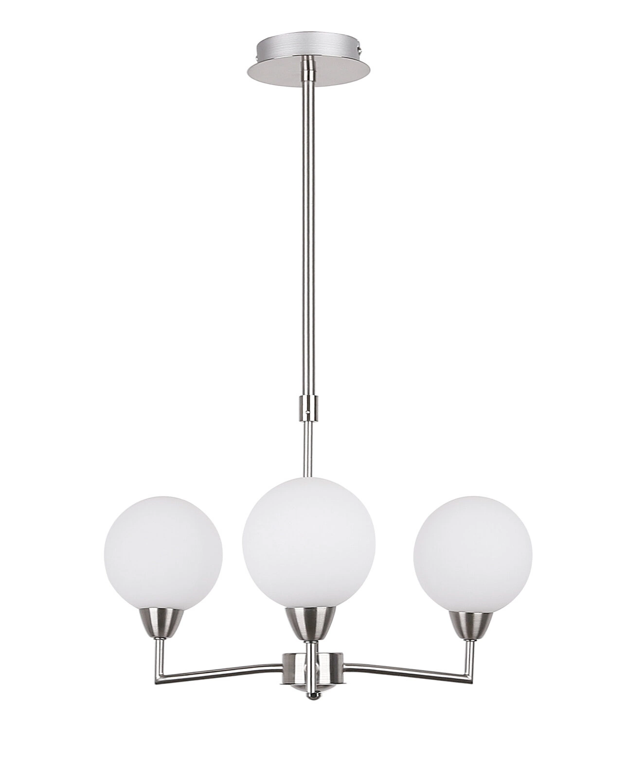 Logos moderní závěsné svítidlo koule 3-bodové od CANDELLUX LIGHTING je stylová volba, která zaujme skleněnými stínidly ve tvaru koulí, elegantní stříbrno-bílou barevností a univerzální formou osvětlení. Výška 65 cm a šířka 45 cm zajišťují, že lampa perfektně vynikne jako hlavní zdroj světla v obývacím pokoji nebo ložnici, jemně podtrhující moderní charakter interiéru. Největší předností je harmonické spojení kovu a skla, které garantuje dlouhou životnost a nadčasový styl.