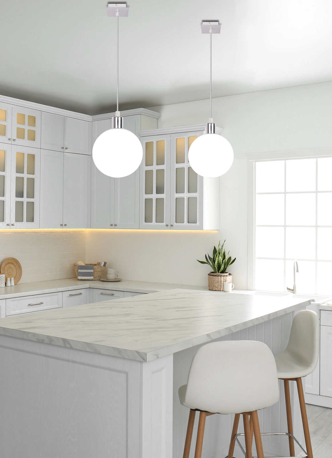 Geometrický tvar skleněné bílé koule a chromované detaily dělají ze závěsné lampy Oden ideální volbu pro milovníky čistých linií a nadčasové jednoduchosti. Minimalistický vzhled skvěle doplní moderní interiér a zároveň dodá prostoru lehkost a svěžest. Matné mléčné sklo stínidla zajišťuje měkké, neoslňující světlo, které je ideální jako hlavní nebo zónové osvětlení v obýváku, ložnici, předsíni či šatně.