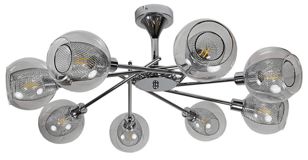 Závěsná lampa Ozzo od značky Candellux Lighting je moderní stropní osvětlení, které kombinuje skleněné stínidla s chromovanými detaily. Díky osmi světelným zdrojům a možnosti nastavení úhlu svícení je tento model ideální jak jako lustr do obývacího pokoje, tak i jako závěsná lampa do ložnice. Promyšlená konstrukce o šířce 68 cm a výšce 32 cm skvěle podtrhne charakter moderního interiéru a vnese do prostoru eleganci i jedinečný lesk.