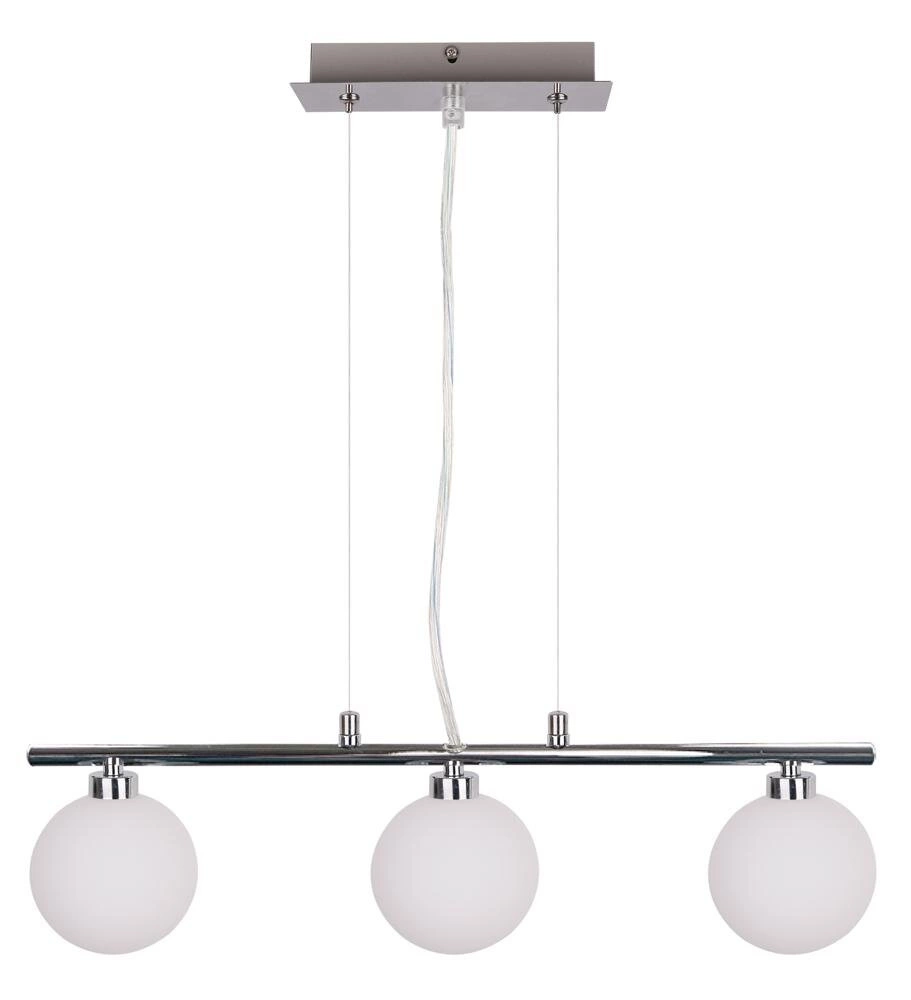 Závěsné svítidlo Raisa od značky Candellux Lighting je moderní lustr s chromovanou povrchovou úpravou, vybavený třemi bílými skleněnými stínidly. Díky šířce 55 cm a výšce 95 cm vynikne jako lampa nad jídelní stůl, do obývacího pokoje, kuchyně nebo jídelny. Kombinace oceli a skla zaručuje dlouhou životnost i nadčasový vzhled, zatímco tříbodový zdroj světla poskytuje optimální osvětlení interiéru a zvýrazňuje jeho osobitý styl.
