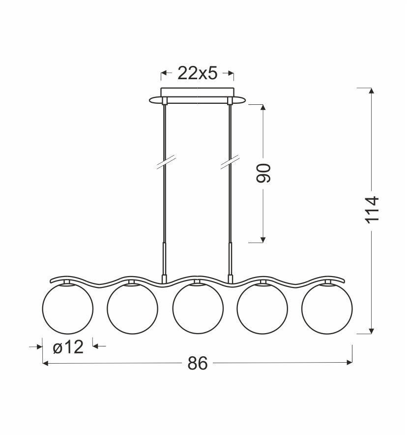 - Šířka 86 cm – optimální nasvícení stolu, ostrůvku nebo obývacího pokoje