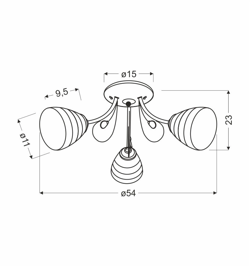 - Tři světelné zdroje – rovnoměrné osvětlení celého interiéru, ideální do obývacího pokoje, jídelny nebo ložnice