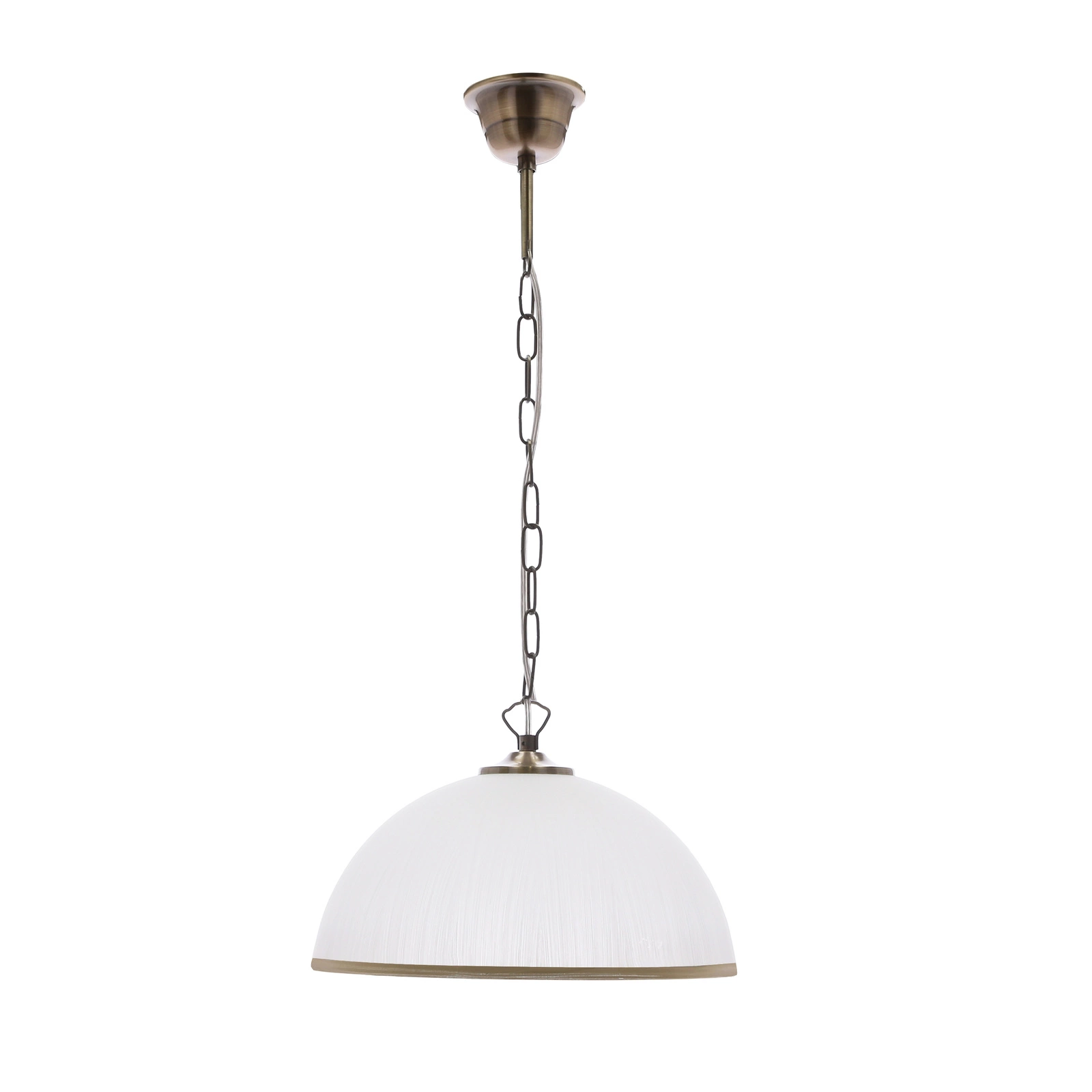 Závěsná lampa Sugar ve tvaru koule není jen zdrojem světla, ale také sofistikovaným designovým prvkem. Bílé skleněné stínidlo jemně rozptyluje světlo a vytváří příjemnou atmosféru – ideální pro rodinná setkání u stolu i chvíle odpočinku v obývacím pokoji. Patinovaná stropní základna a ocelový řetěz dokonale ladí s elegantními a glamour interiéry, podtrhují jejich luxusní vzhled. Skvěle se hodí také jako lampa do jídelny nebo kuchyně, kde prostoru dodá lehkost a šmrnc.