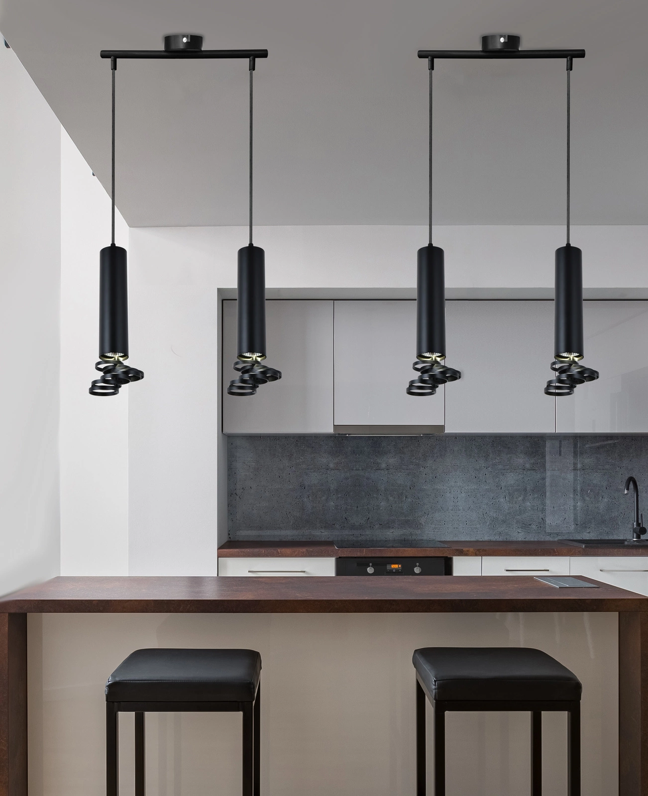 Závěsná lampa Tuba černá je skvělou volbou pro milovníky jednoduchých, geometrických tvarů a nadčasového moderního designu. Její štíhlé hliníkové tubusy a černý ocelový stropní držák tvoří harmonický celek, který jemně podtrhuje charakter každé místnosti. Dva světelné zdroje zajišťují rovnoměrné osvětlení – jak nad pracovní deskou v kuchyni, tak jako hlavní světlo nad jídelním stolem nebo v obývacím pokoji.