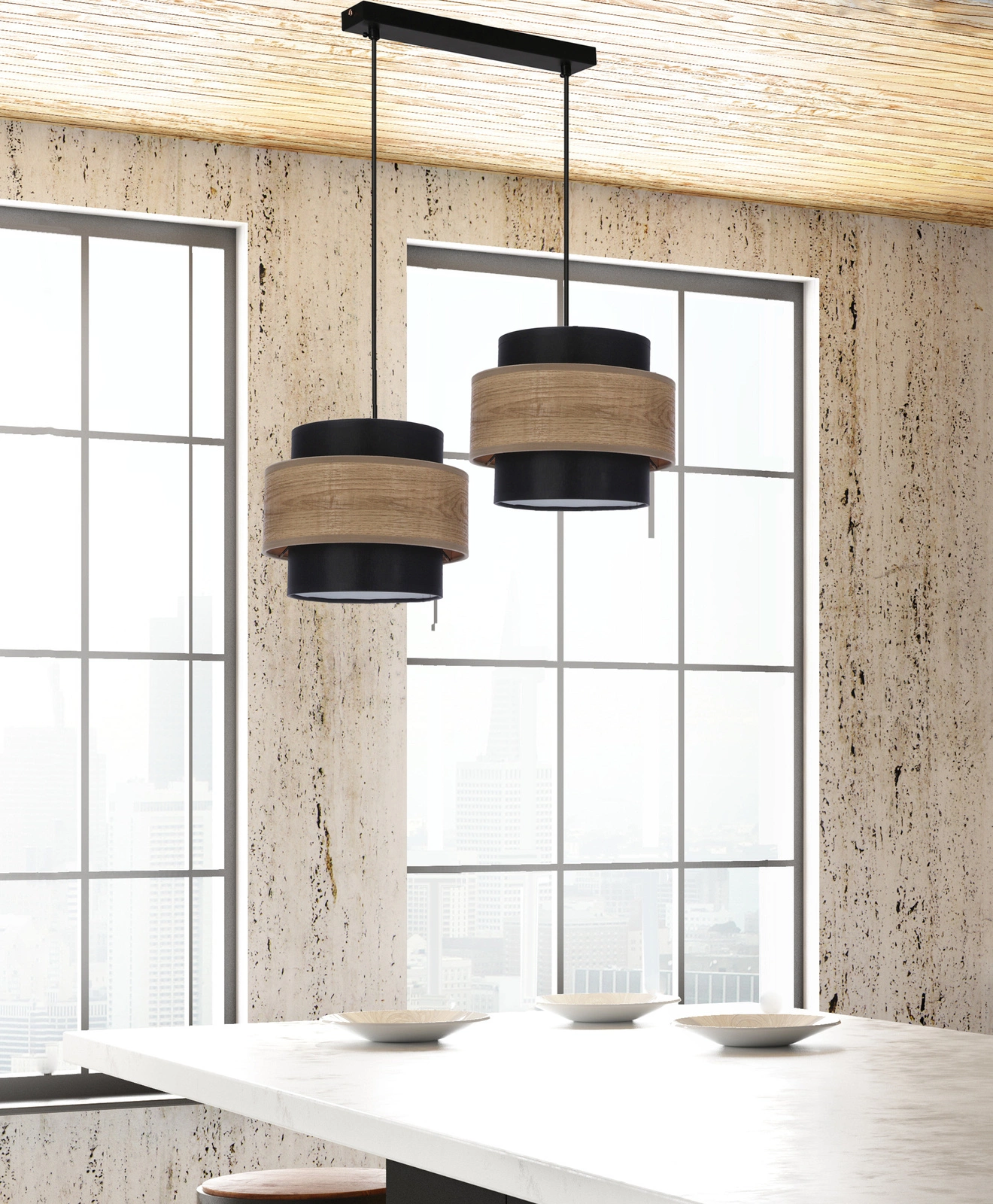 Dvojitá závěsná lampa - elegantní kompozice černé a dřeva