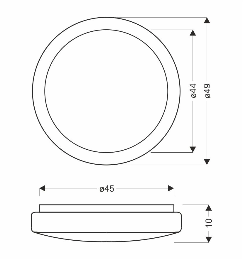 - Kulatý LED plafon o průměru 49 cm – ideální pro větší místnosti, rovnoměrně osvětluje celý prostor
