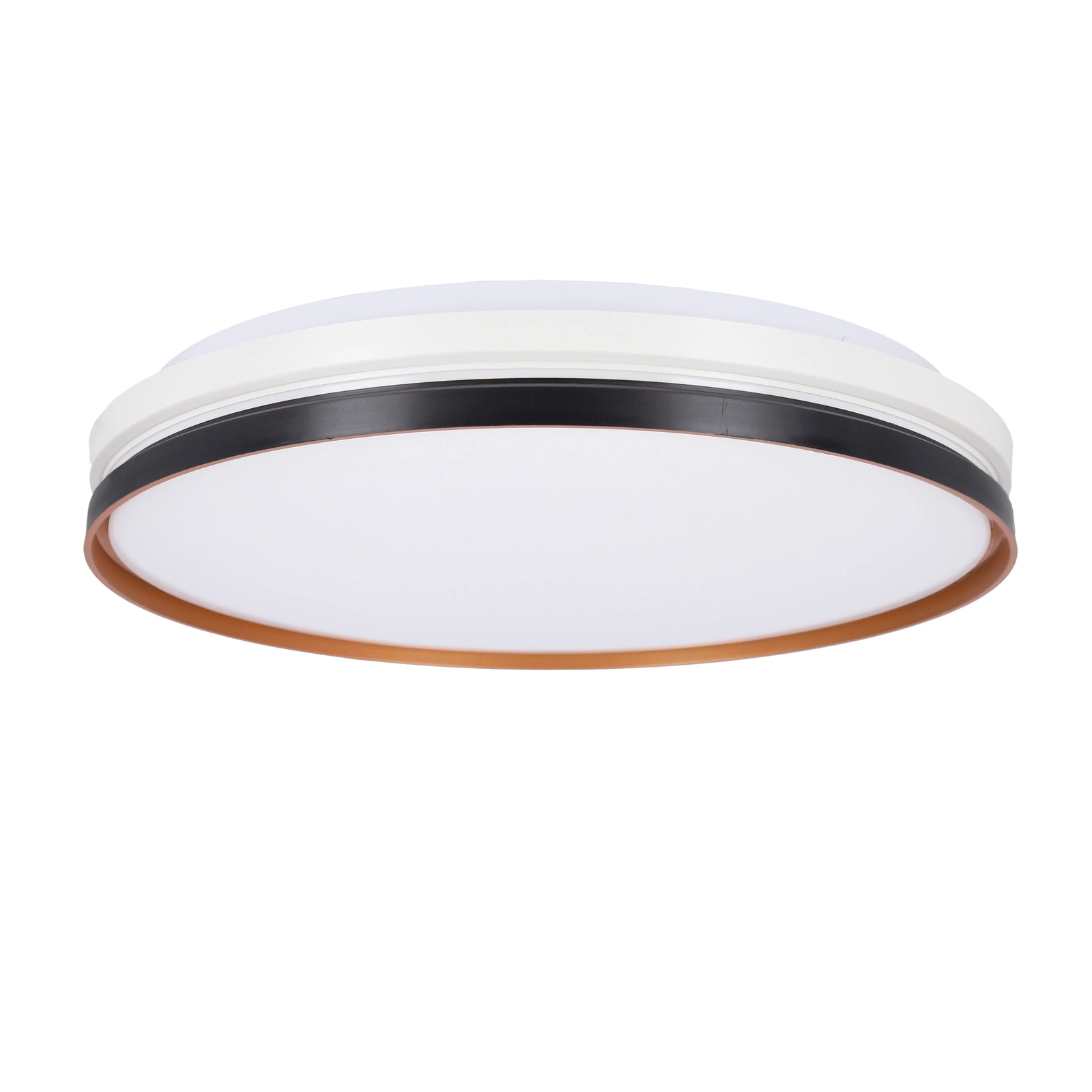 Plafon Montana zaujme harmonickým spojením matné černé, bílé a elegantní zlaté. Akrylový difuzor jemně rozptyluje světlo a eliminuje ostré stíny, zatímco zlatý prvek uvnitř dodává svítidlu rafinovaný vzhled. Toto řešení je ideální volbou pro stylově zařízené obývací pokoje, jídelny nebo ložnice, kde je důležitá nejen funkčnost, ale i estetika osvětlení. Minimalistický tvar stropního LED svítidla Montana perfektně doplňuje moderní interiérové aranžmá.
