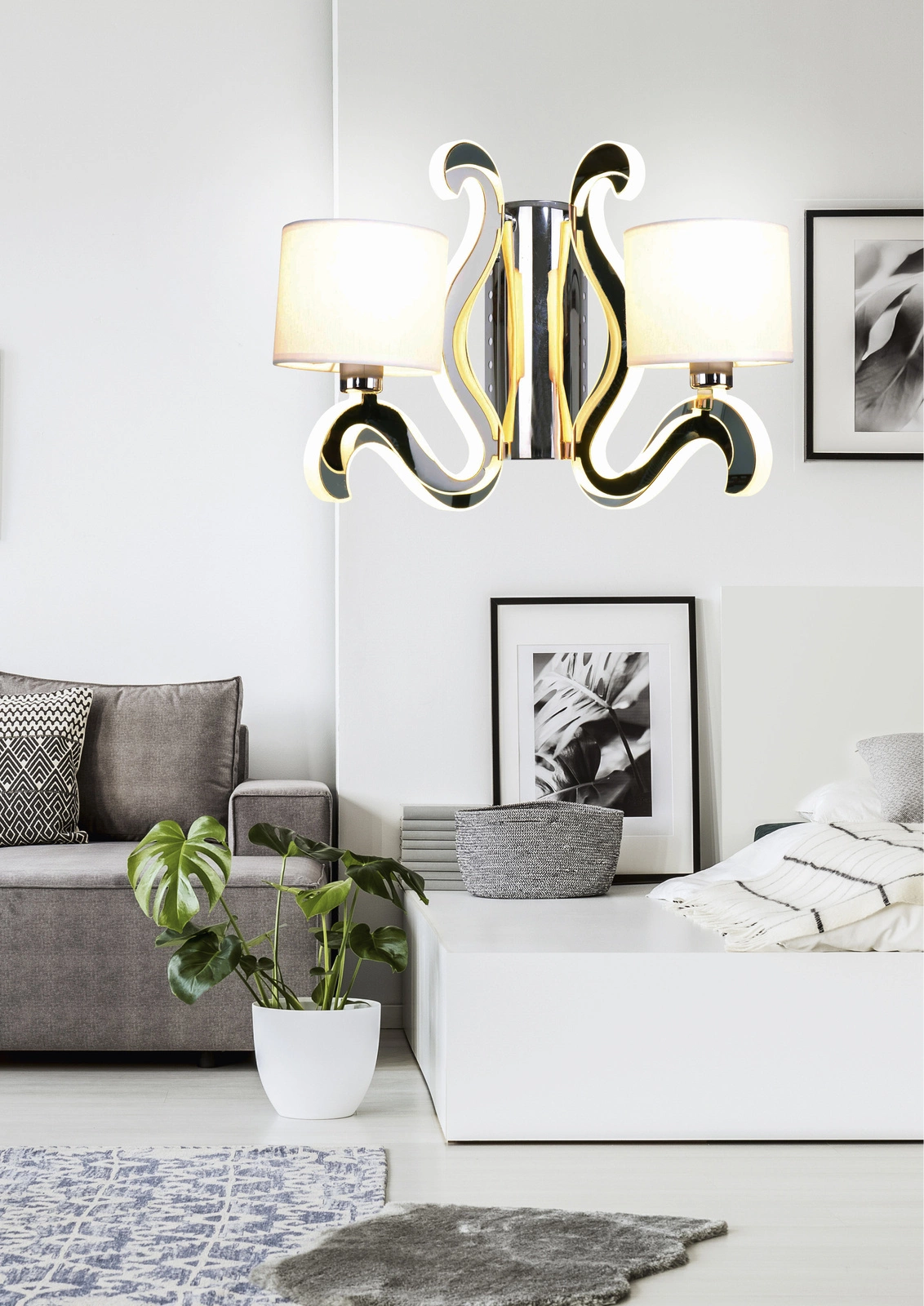 Nástěnné svítidlo LED Ambrosia 1 od značky Candellux je elegantní nástěnná lampa v moderním stylu, navržená pro stylové interiéry obývacích pokojů a ložnic. Kombinace pochromovaného kovového těla s bílým textilním stínidlem zajišťuje nejen odolnost, ale také jemný dekorativní efekt. Model o šířce 35 cm a výšce 30 cm je vybaven integrovaným LED osvětlením s teplým odstínem světla a místem pro žárovku E14, což z tohoto nástěnného svítidla dělá praktické řešení pro každodenní použití.
