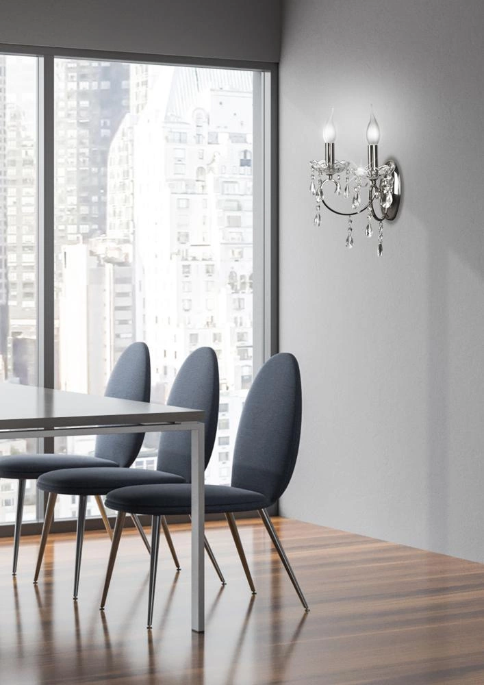 Nástěnné svítidlo Aurora zaujme dekorativní formou inspirovanou klasickým francouzským designem. Chromovaný povrch a jemně zakřivená ramena vytvářejí poutavý celek, který přitahuje pozornost a dodává interiéru nádech elegance. Je to ideální volba pro ty, kteří ocení palácový šarm v moderním pojetí – Aurora skvěle podtrhne aranžmá v ludvíkovském i klasickém stylu.