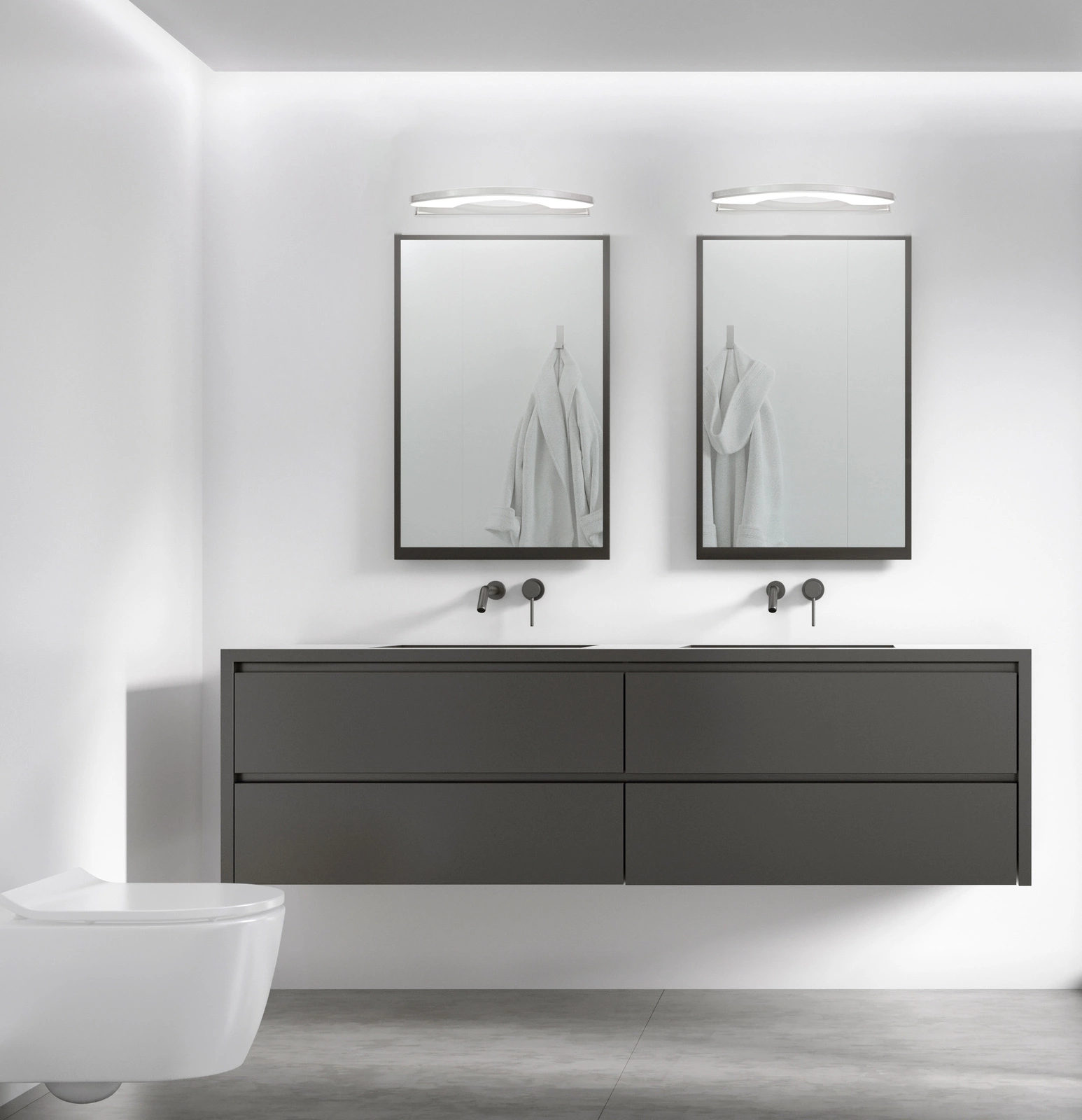Díky šířce 41 cm a hloubce 11 cm toto nástěnné svítidlo optimálně osvětluje celou plochu zrcadla, eliminuje stíny a zajišťuje pohodlí i při slabším hlavním osvětlení. Integrovaná LED technologie zaručuje dlouhou životnost a úsporu energie, což pomáhá výrazně snížit účty za elektřinu bez kompromisu na intenzitě světla. Kovovo-akrylový difuzor je snadný na údržbu, což oceníte zejména ve vlhkých místnostech.