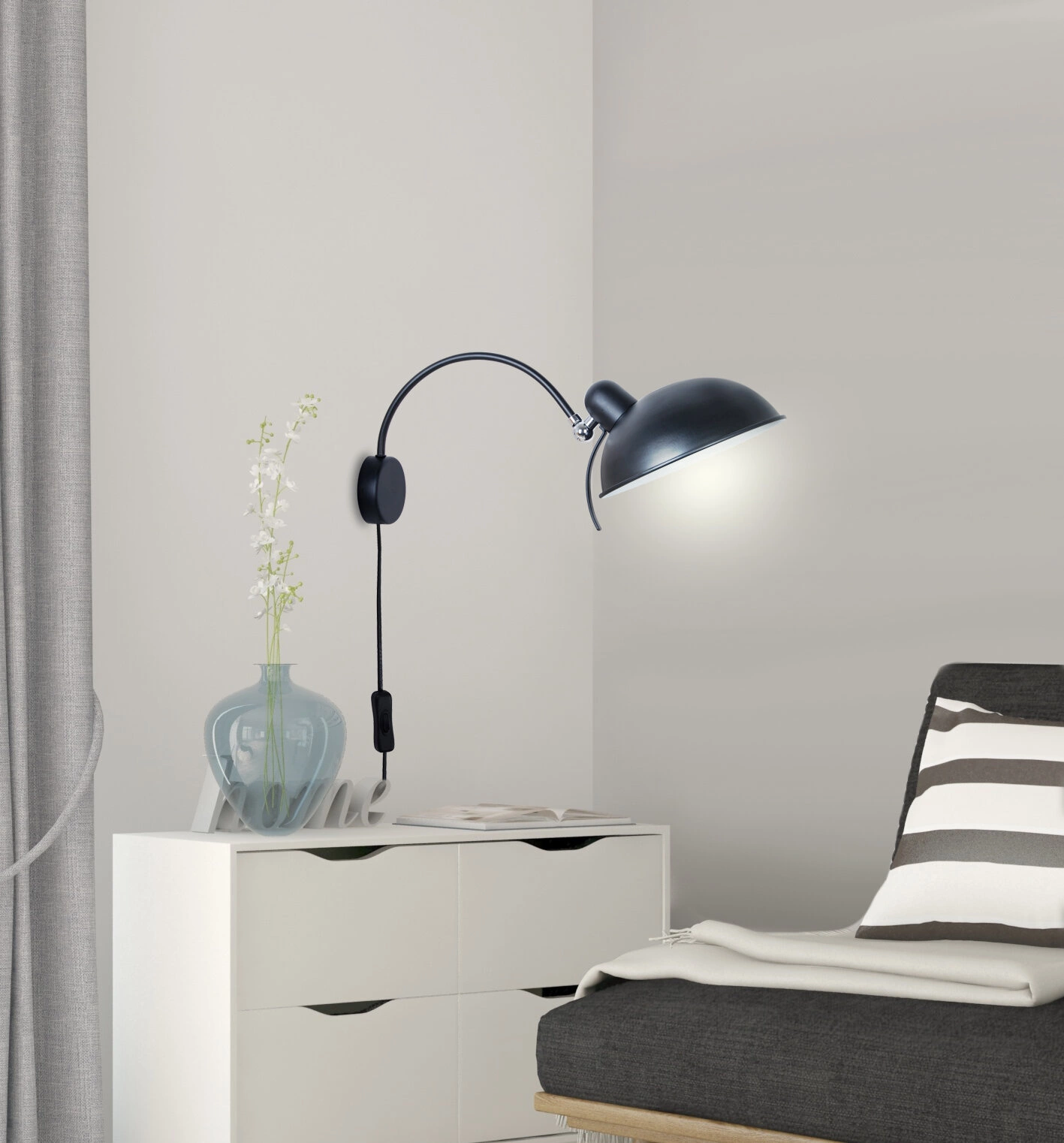 Nástěnné svítidlo Nora od značky CANDELLUX LIGHTING je ideální volbou pro milovníky funkčních řešení a výrazného designu. Černé kovové tělo s ramenem, nastavitelným stínidlem a praktickým vypínačem zaručuje, že tato nástěnná lampa perfektně poslouží jak v ložnici, tak v obývacím pokoji. Kompaktní výška 17,5 cm a výsuvné rameno o délce až 46,5 cm umožňují přesné nasvícení vybrané části interiéru.