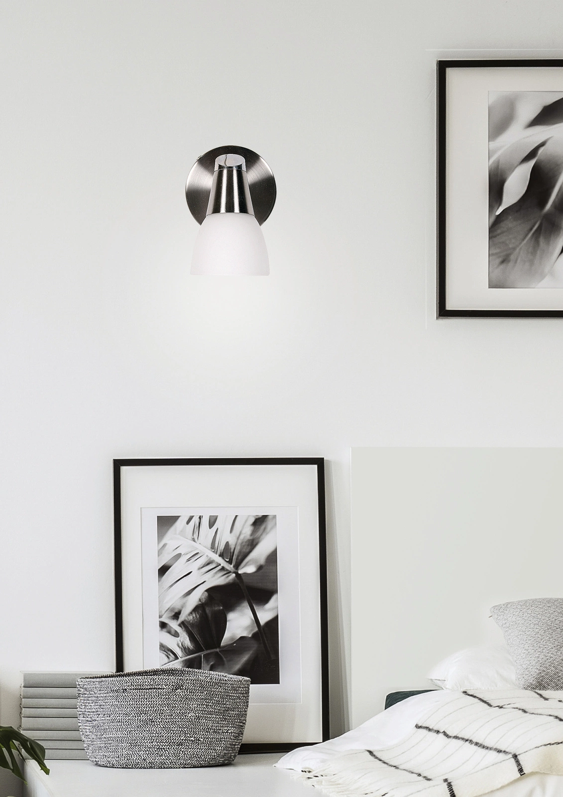 Nástěnné svítidlo Selia 1x40W G9 nikl mat/chrom bílá je produkt, který v sobě spojuje jednoduchost a eleganci. Díky svému minimalistickému designu s pískovaným a lakovaným stínidlem a dekorativním nadsvětlíkem dokonale zapadne do moderních i klasických interiérů. Vyznačuje se nastavitelným úhlem stínidla, který umožňuje optimálně nastavit směr světla.