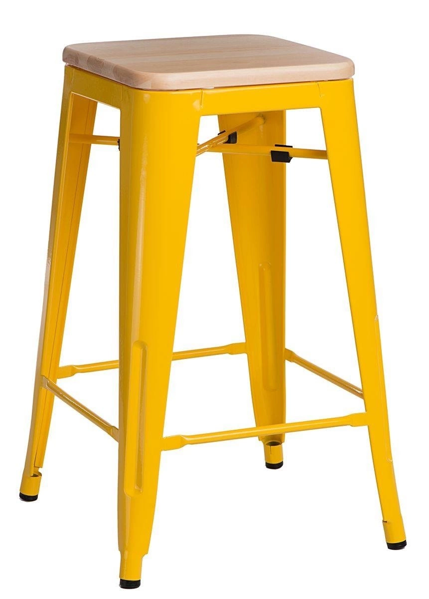 Hoker Paris Wood 75 cm od značky D2.DESIGN je industriální barová stolička bez opěradla, navržená s ohledem na moderní kuchyně a kuchyňské ostrůvky. Kombinace žluté, lakované kovové podnože a sedáku z přírodního borovicového dřeva jí dodává jedinečný charakter. Výška 75 cm z ní činí ideální barovou židli ke kuchyňskému ostrůvku nebo barovému pultu, zatímco robustní konstrukce zaručuje stabilitu a dlouhou životnost i při každodenním používání.