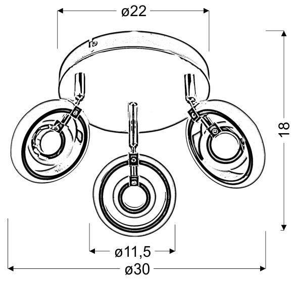 Díky třem integrovaným LED zdrojům o výkonu 6W každý, poskytuje stropní svítidlo rovnoměrné a úsporné osvětlení. Teplá barva světla podporuje relaxaci a vytváří útulnou atmosféru v místnosti. Nepotřebujete měnit žárovky – to znamená pohodlí na dlouhá léta, zatímco pevná kovová konstrukce zaručuje odolnost i snadnou údržbu.