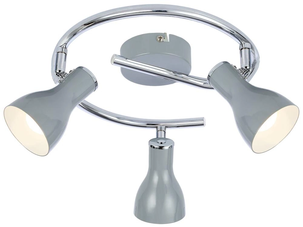 Lampa sufitová Julie od značky Candellux Lighting je moderní, tříbodové závěsné svítidlo se šedými kovovými stínidly, které se perfektně hodí do obývacího pokoje, kuchyně nebo nad jídelní stůl. Díky kompaktním rozměrům (výška 16 cm, šířka 42 cm) a nastavitelným, pohyblivým stínidlům můžete světlo přesně nasměrovat tam, kde je nejvíce potřeba. Kulatá základna v chromovém provedení dodává lampě jemnou eleganci a podtrhuje nadčasový charakter tohoto stropního osvětlení.