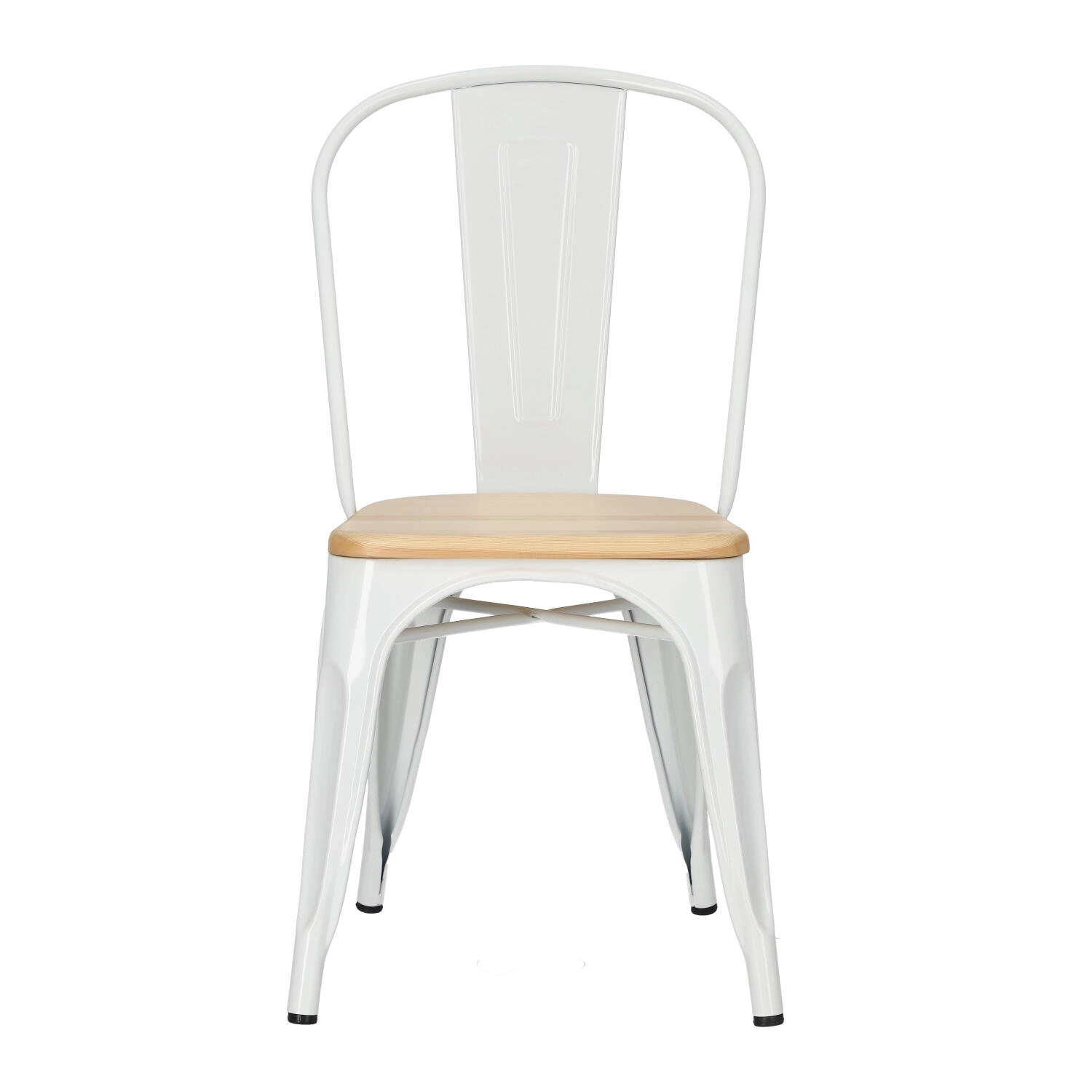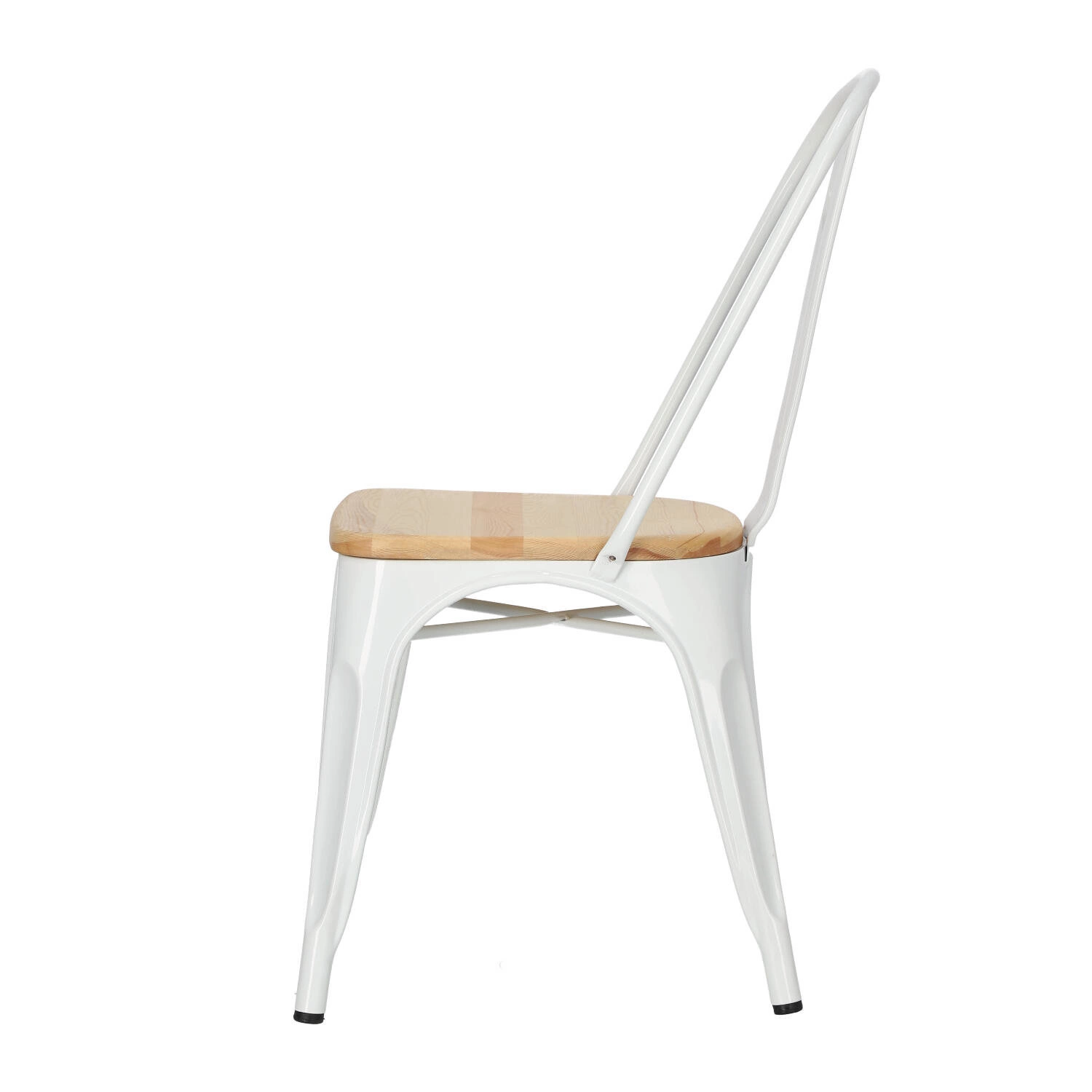 Paris Wood zaujme výrazným tvarem inspirovaným industriálním stylem. Lesklý bílý kovový rám působí vzdušně a zároveň zajišťuje stabilitu i odolnost při každodenním používání. Přírodní dřevěný sedák příjemně zjemňuje syrovost kovu, poskytuje komfortní posezení a snadnou údržbu – stačí jej otřít vlhkým hadříkem, aby zůstal stále jako nový. Je to skvělá volba jako jídelní židle, která najde uplatnění i u kuchyňského stolu nebo v restauracích.