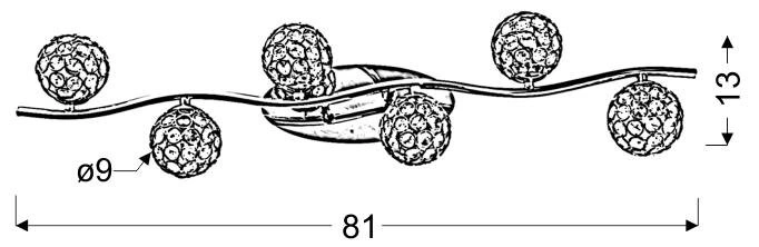 Starlet je 6-bodová stropní lampa o délce 81 cm a výšce 13 cm, díky čemuž rovnoměrně osvítí i větší místnosti. Možnost použití žárovek o výkonu až 40W (patice G9) zajišťuje efektivní a příjemné světlo ideální pro každodenní použití. Kovová konstrukce a skleněné stínidla jsou zárukou dlouhé životnosti a snadné údržby, a absence složité montáže umožňuje rychlou a pohodlnou instalaci.