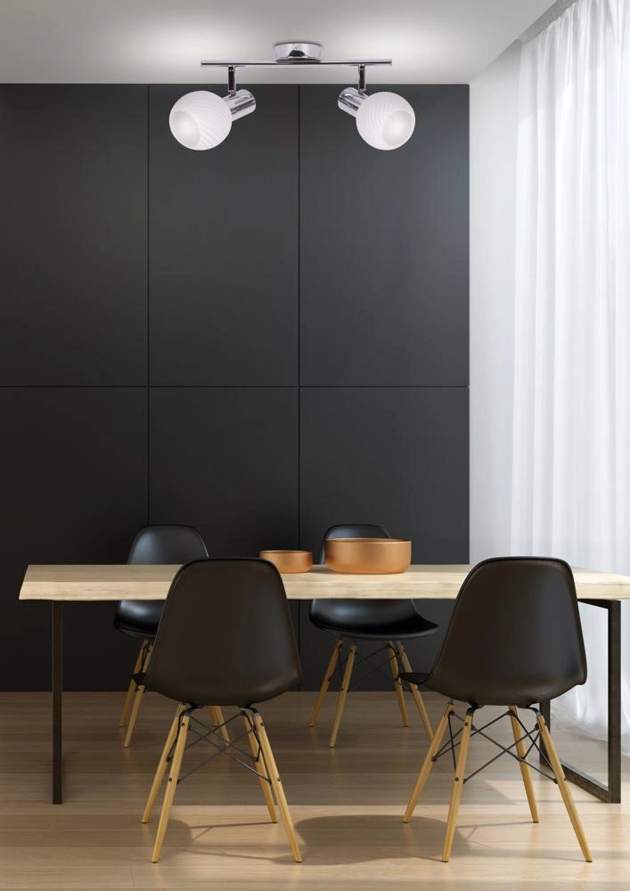 Dvě pohyblivá stínidla umožňují individuální nastavení směru světla, což vám dovolí perfektně přizpůsobit osvětlení vašim potřebám – ať už jde o osvětlení jídelního stolu, kuchyňské pracovní desky nebo relaxační zóny v obýváku. Turno je stropní svítidlo, které se výborně hodí jako hlavní zdroj světla i jako praktické bodové osvětlení nad kuchyňský ostrůvek nebo do předsíně. Možnost použití žárovek E14 do 40W vám dává volnost ve výběru teploty a intenzity světla.