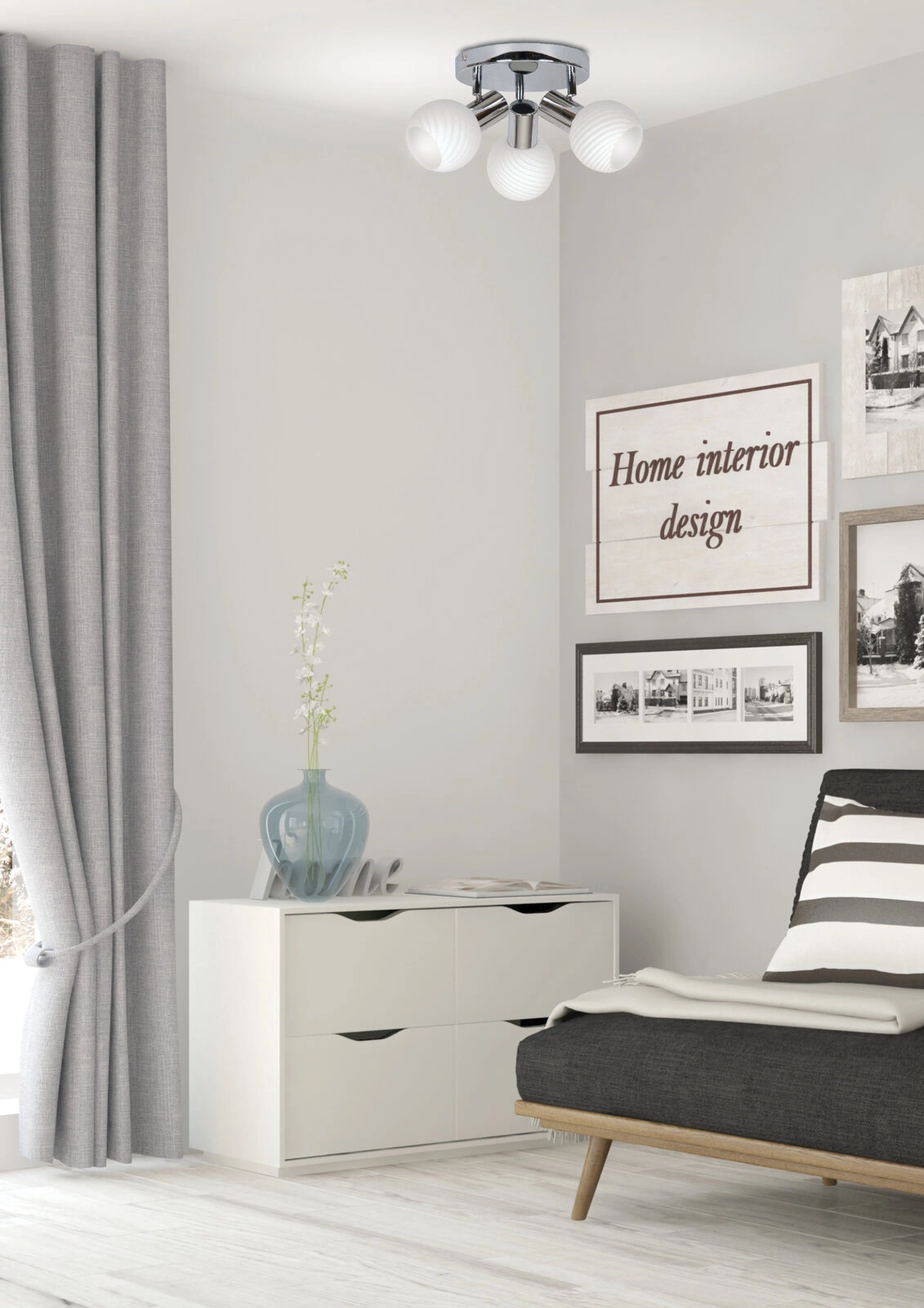 Stropní svítidlo Turno je skvělou volbou pro milovníky moderního stylu. Bílá skleněná stínidla v kombinaci s chromovanou základnou vytvářejí jemný a elegantní efekt, který dokonale ladí se světlými a minimalistickými interiéry. Díky univerzální barevnosti se tento plafon hodí nejen do obývacího pokoje, ale také do kuchyně, předsíně nebo ložnice, kde dodá svěžest a lehkost celému prostoru.
