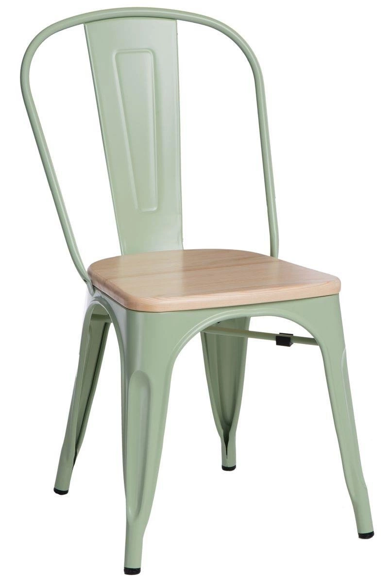 Jídelní židle Paris Wood zelená kovová s dřevěným sedákem industriální D2.DESIGN
