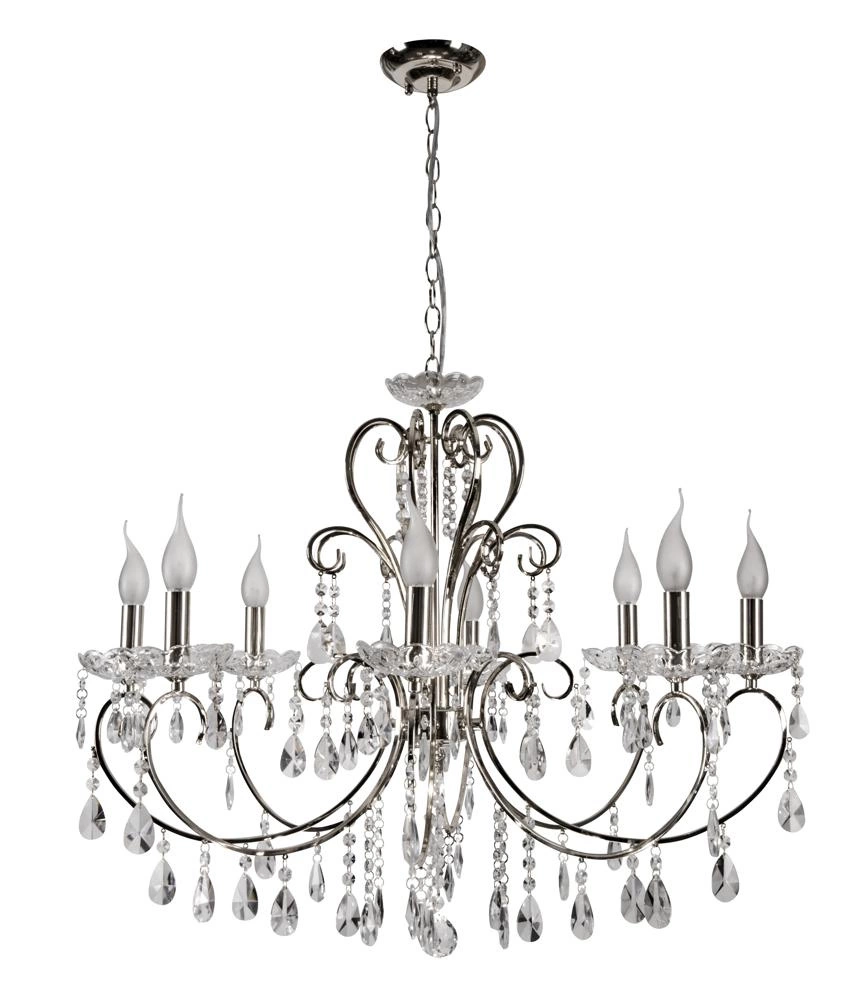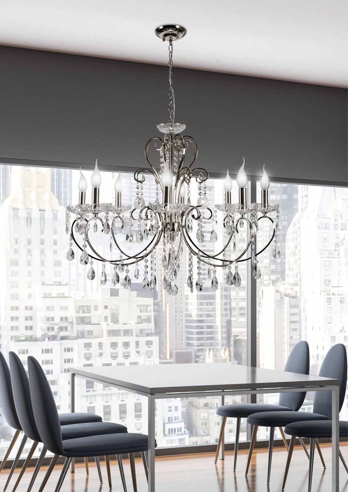 Lustři glamour Aurora chrom 8-ramenný skleněno-kovový do obýváku nebo jídelny s nastavitelnou výškou