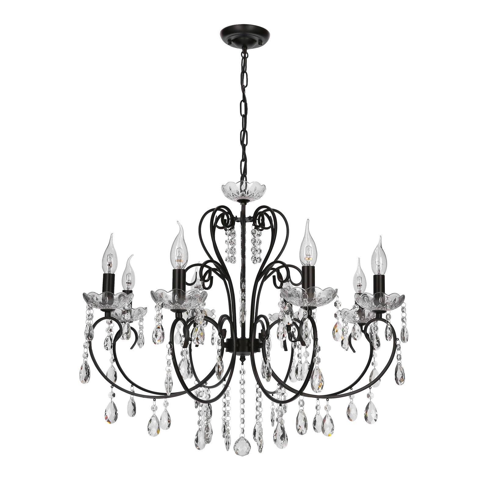 - Černá barva a bohaté křišťálové ozdoby dělají z lampy výraznou interiérovou dekoraci