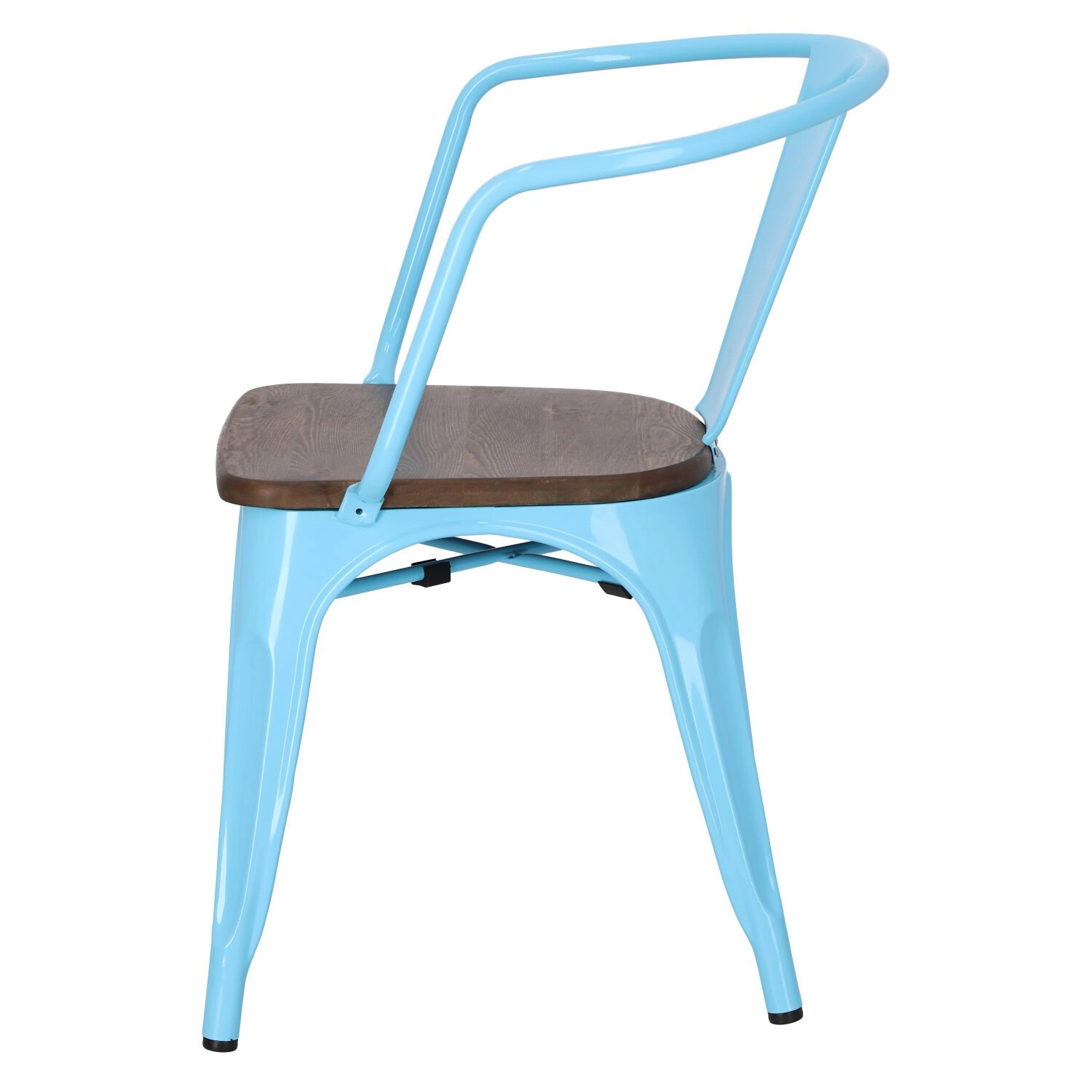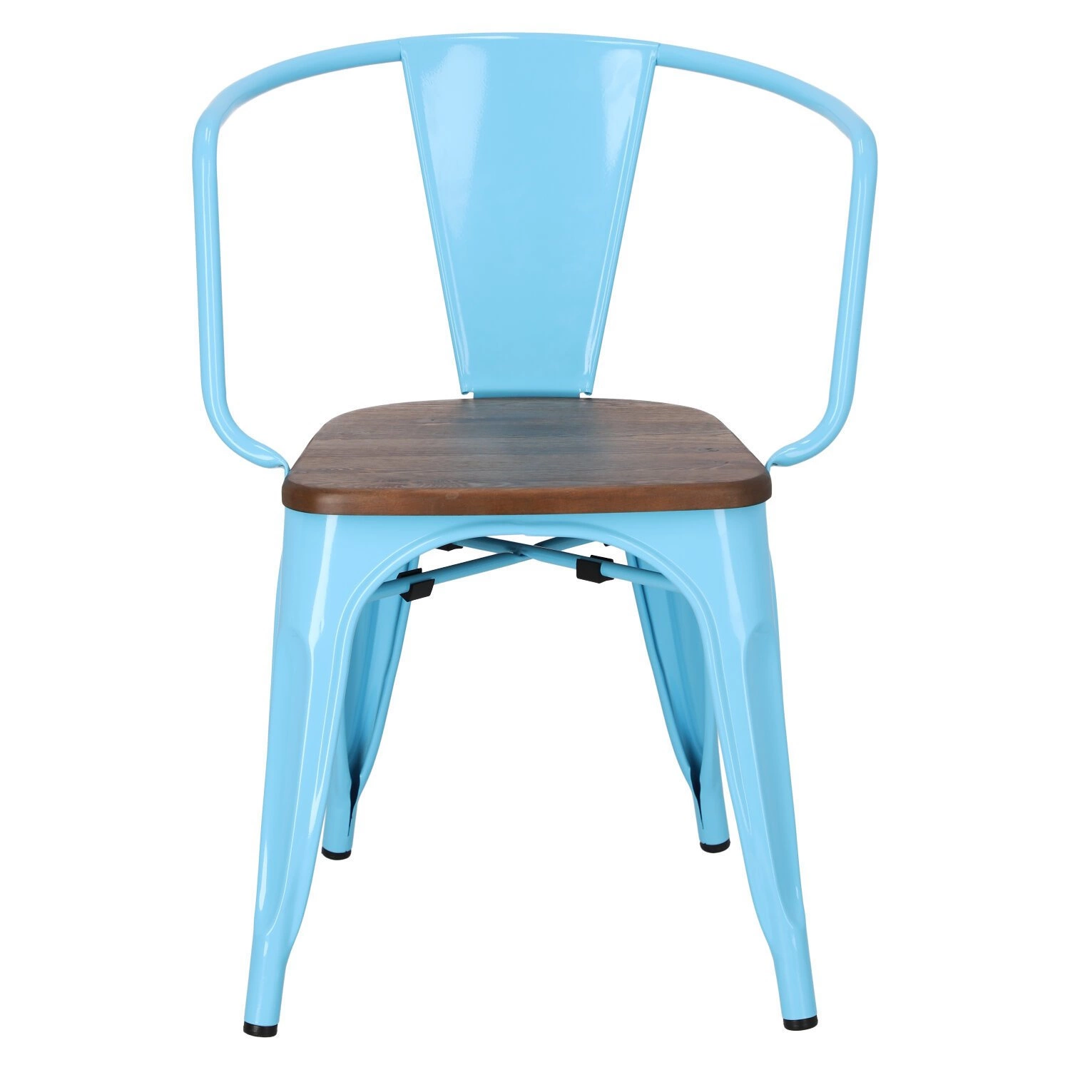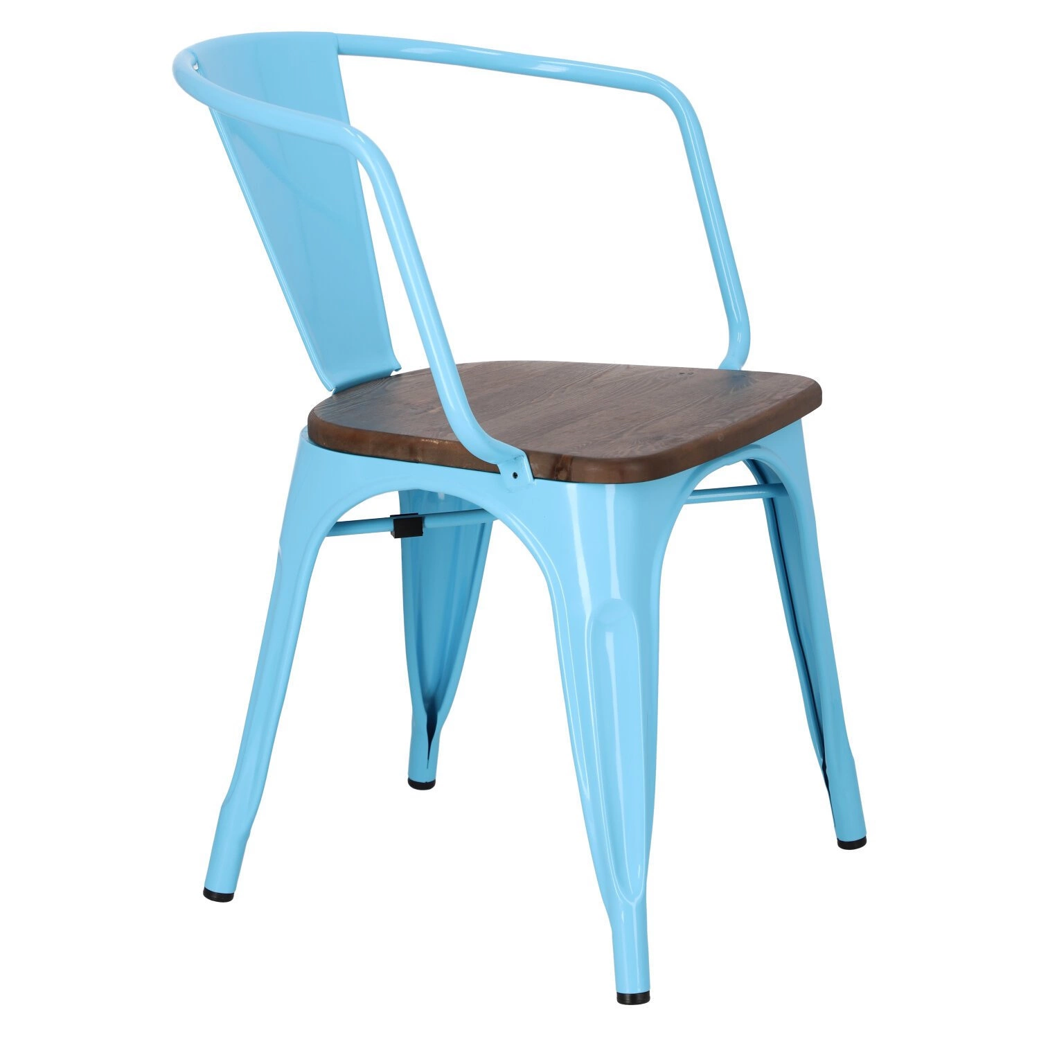 Paris Arms Wood je skvělou volbou pro milovníky moderního a industriálního interiéru. Kombinace sytě modrého, lesklého kovového rámu s tmavě hnědým dřevěným sedákem vytváří působivý vizuální kontrast, který okamžitě upoutá pozornost. Výrazný geometrický tvar a přítomnost područek podtrhují unikátní design této židle, která je nejen praktickým, ale i dekorativním prvkem každé místnosti. Perfektně se hodí do loftové jídelny, otevřené kuchyně nebo designového obývacího pokoje.