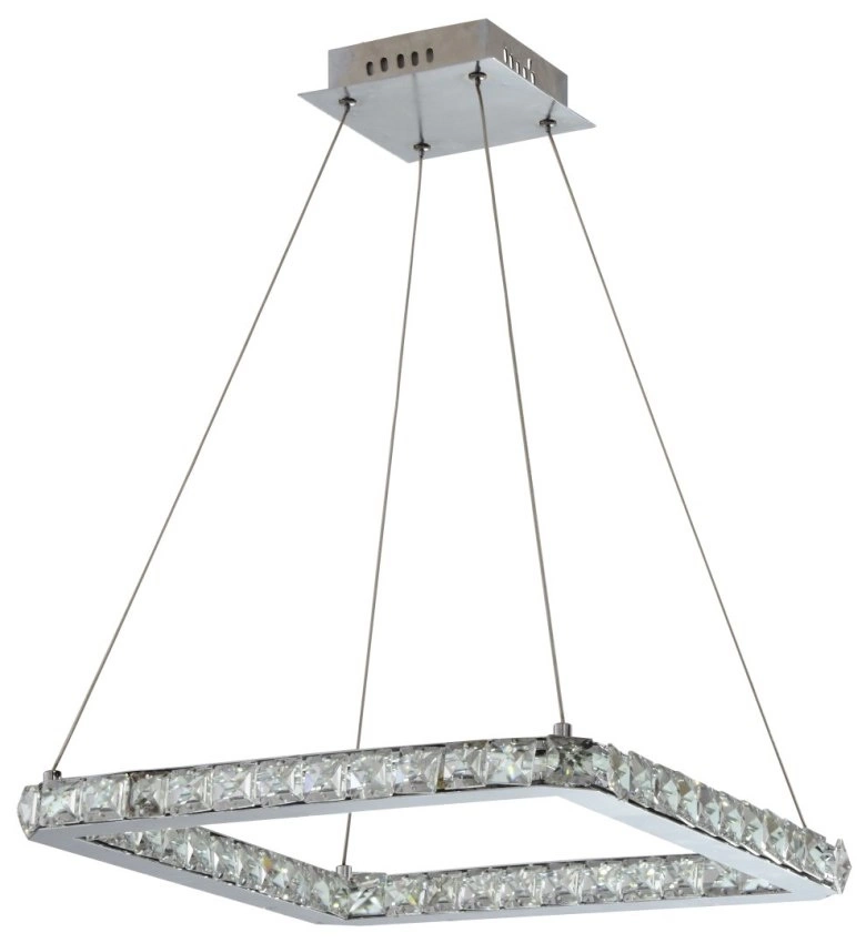 Závěsné LED svítidlo Lords čtvercové chrom 42x42, výškově nastavitelné, moderní do obýváku a kuchyně
