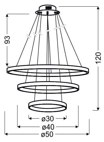 Představujeme vám závěsnou lampu Lune 50, která se díky svému jedinečnému designu stane skutečnou ozdobou každé místnosti. Toto kulaté, trojité závěsné svítidlo je napájeno energeticky úspornými 60W LED diodami, které vyzařují měkké teplé světlo s barevnou teplotou 4000 K. Světelný zdroj je ukryt pod mléčným proužkem z plastu, který zabraňuje oslnění a umožňuje pohodlné používání svítidla.
