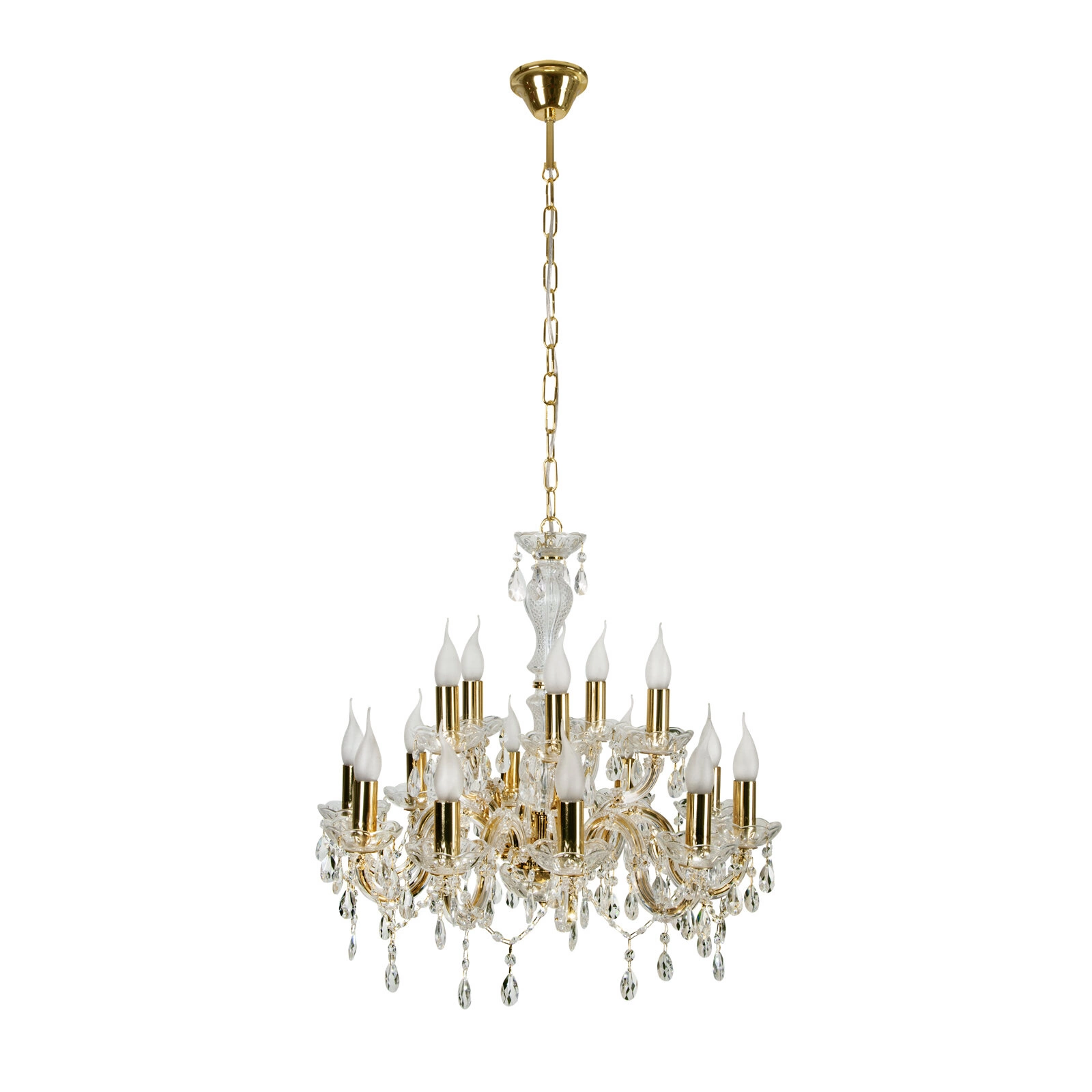 Křišťálový lustr Maria Teresa zlatý 15bodový od značky CANDELLUX je ideální volbou pro ty, kteří oceňují luxusní atmosféru interiéru. Osvětlení z kovu a jemného plastu v elegantní zlaté úpravě spojuje klasický lesk křišťálových detailů s moderním designem. Model s působivou výškou 130 cm a šířkou 62 cm skvěle vynikne jako dominantní lustr do obývacího pokoje, ložnice nebo nad jídelní stůl a podtrhne prestiž každého prostoru.
