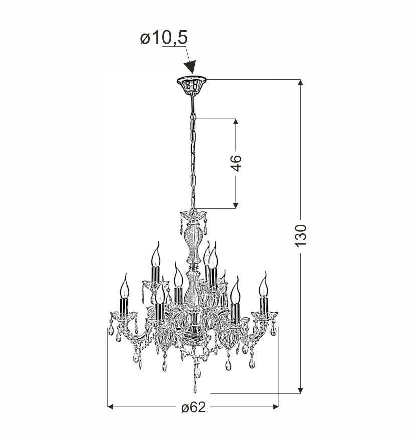 Hledáte lustr, který zaujme na první pohled a vytvoří jedinečnou atmosféru? Maria Teresa od CANDELLUX LIGHTING je křišťálový lustr, který perfektně poslouží jako hlavní osvětlení obývacího pokoje, ložnice nebo jídelny. Křišťálové detaily nádherně rozptylují světlo a navozují teplou, luxusní atmosféru – ideální pro večerní posezení i odpočinek po práci. Díky šířce 62 cm lustr vynikne i ve větších prostorách.