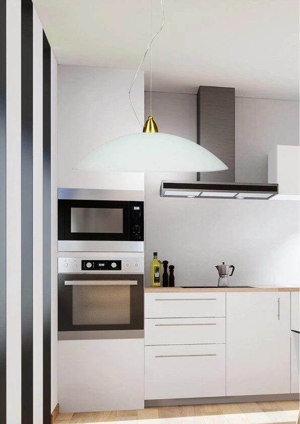 - Bílé skleněné stínidlo – poskytuje měkké, neoslňující světlo a moderní vzhled