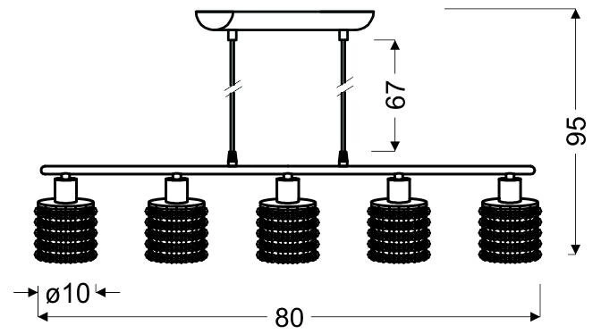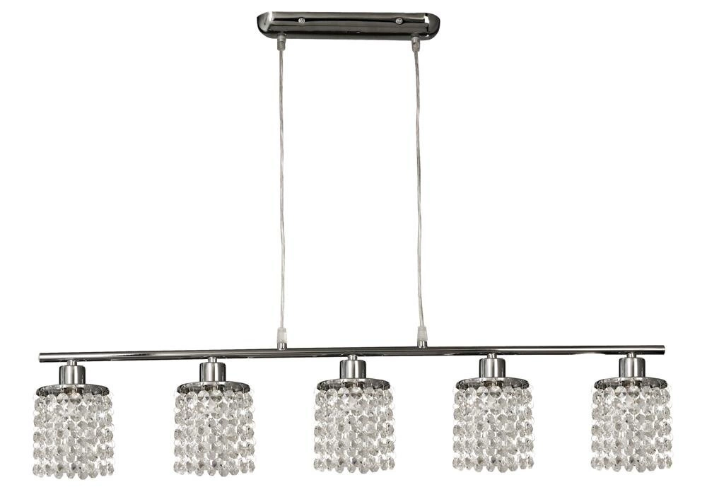 stropní svítidlo nadčasový výrobek; ozdobné průhledné krystaly, které se třpytí v dopadajícím světle a odrážejí se v zrcadlovém povrchu chromované základny; v sadě: nástěnná lampa, bodová lampa, lampa 2, 3, závěsná lampa 1 a 3 a studijní lampa; k dispozici také ve dvoubarevném provedení s průhlednými a černými krystaly
