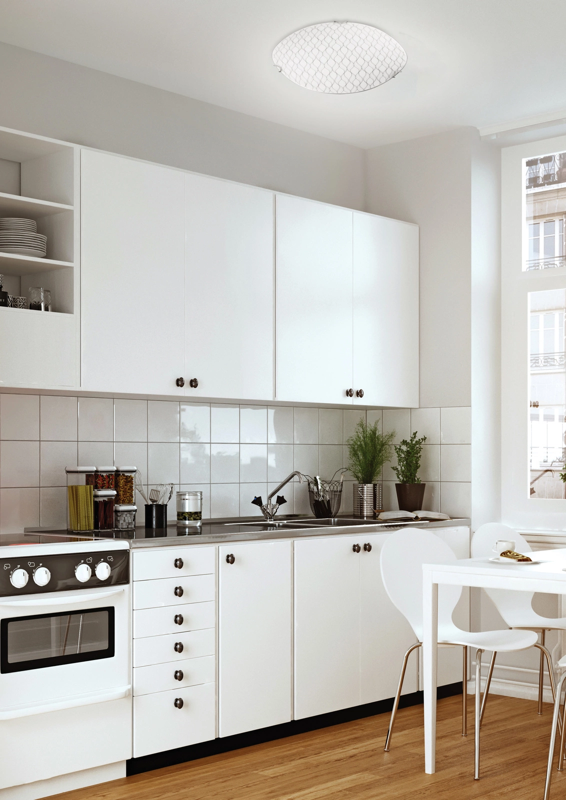 Stropní svítidlo kombinuje klasickou barvu - bílou - s moderním materiálem - sklem. stropní svítidlo Tato kombinace se skvěle hodí do klasických i modernějších interiérů. stropní svítidlo Díky bílé barvě je univerzální a snadno se kombinuje s různými barvami stěn a nábytku.
