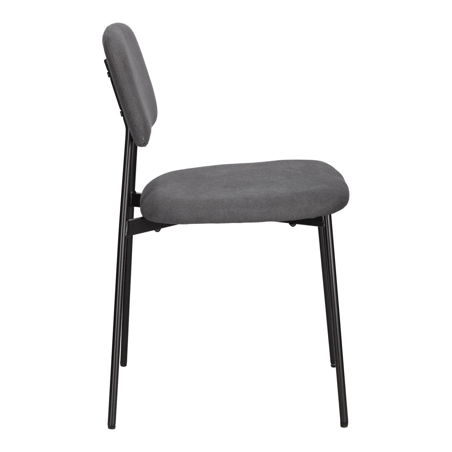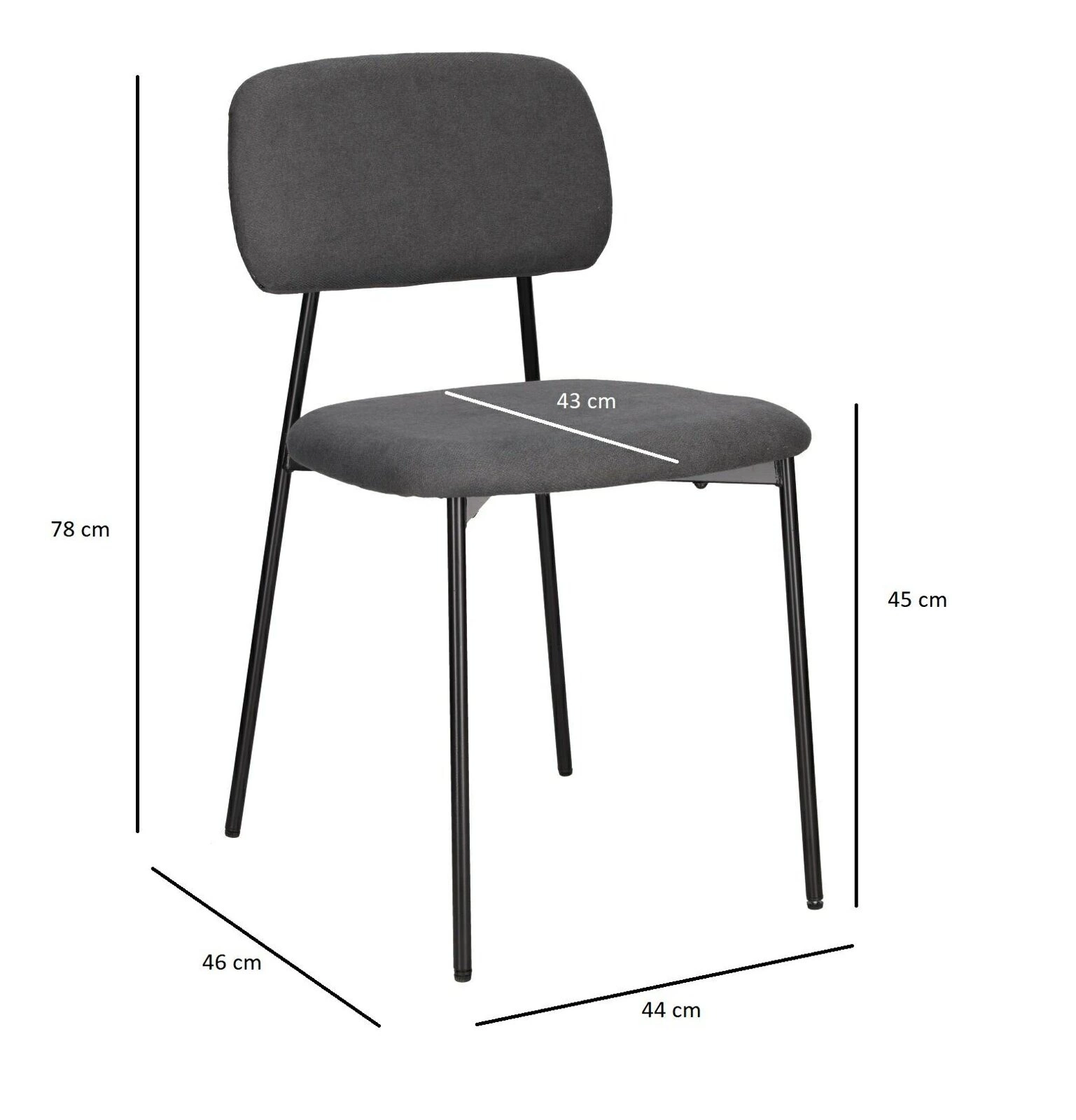 Měkký sedák a ergonomicky tvarované opěradlo poskytují příjemnou oporu zad při rodinných večeřích, dlouhých setkáních nebo práci u stolu. Výška sedáku 45 cm umožňuje správné držení těla, což přispívá k pohodlí i při dlouhodobém používání. Kovová základna zajišťuje stabilitu a kvalitní potahová látka je příjemná na dotek a snadno se udržuje – stačí ji otřít vlhkým hadříkem, aby židle zůstala svěží.