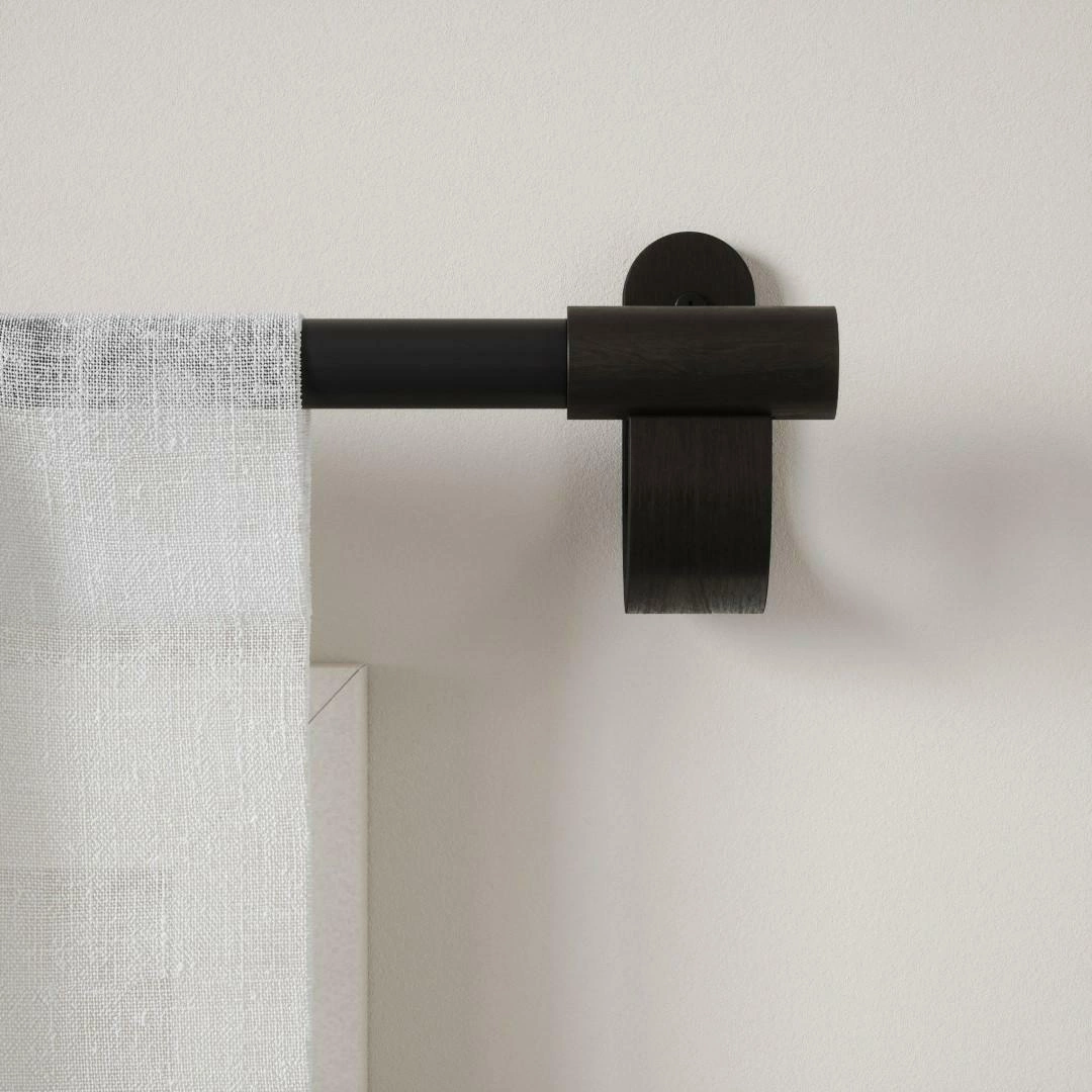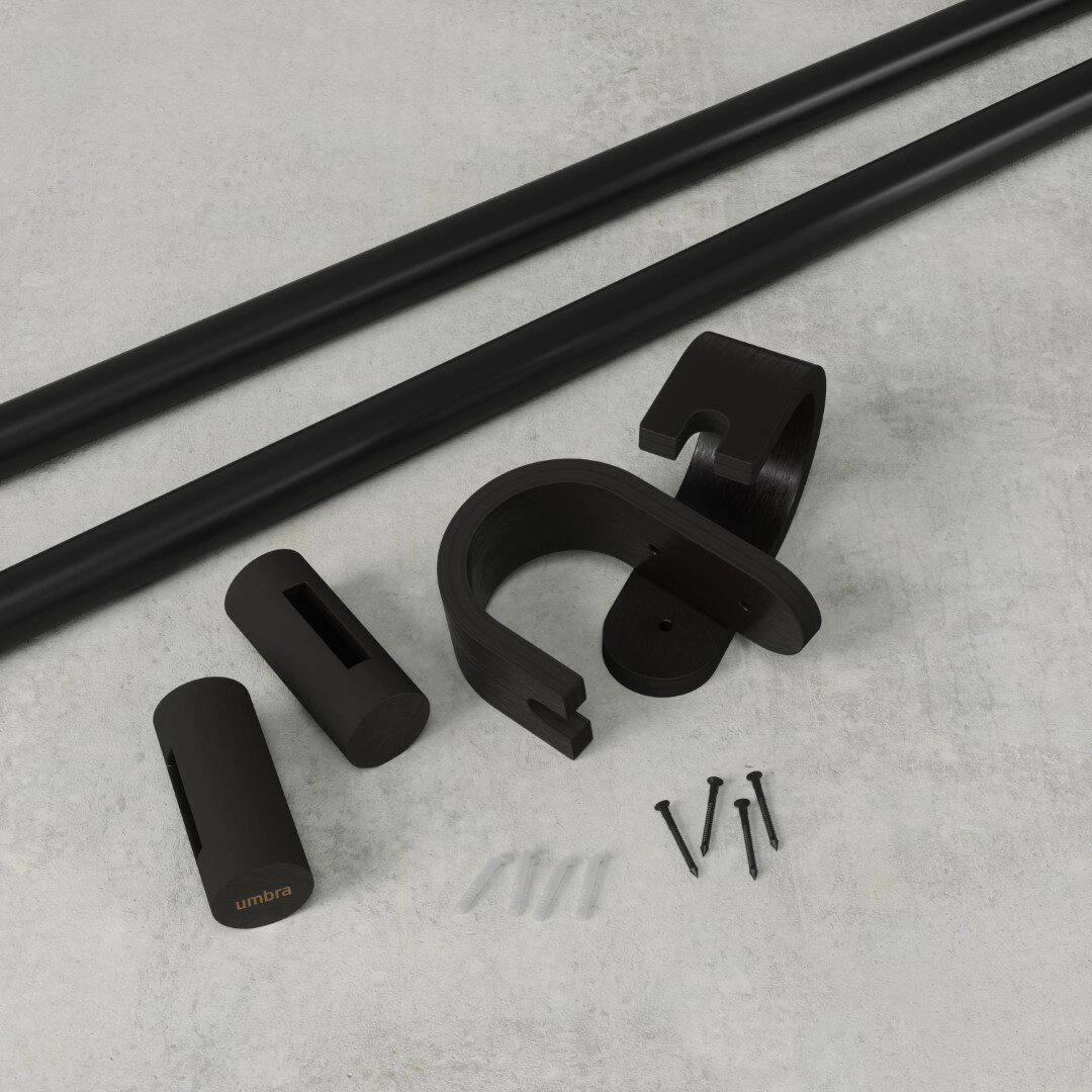 Garnýž Bellwood Umbra spojuje minimalistický, moderní design s jemným přírodním dřevem. Matně černá tyč se krásně doplňuje s teplými dřevěnými koncovkami, což vytváří harmonický celek. Tento detail nejen upoutá pozornost, ale také dodá interiéru útulnost a eleganci. Skvělá volba, pokud hledáte garnýž do obýváku nebo ložnice v moderním, skandinávském či loftovém stylu.