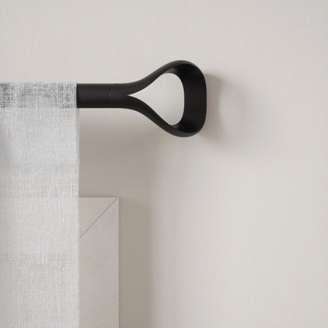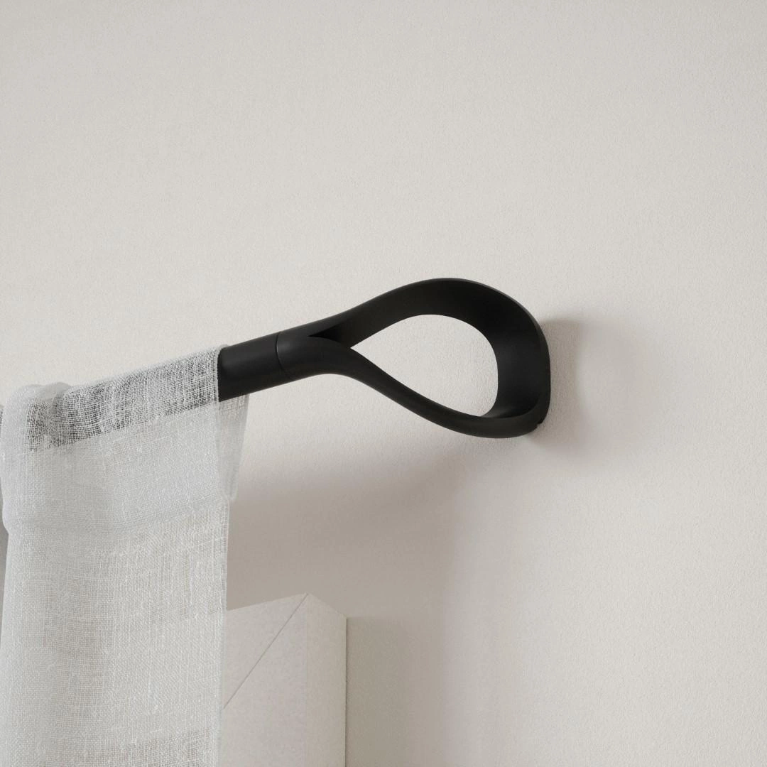 Jednoduchá nastavitelná garnýž Loop Umbra je moderním řešením navrženým s ohledem na stylové interiéry obývacích pokojů a ložnic. Vyrobena z odolného kovu v hluboké černé barvě, umožňuje plynulé nastavení délky v rozmezí od 107 až do 305 cm. Díky tomu snadno přizpůsobíte garnýž jak standardním, tak velmi širokým oknům a získáte stabilní a pohodlné používání i při maximálním zatížení do 10 kg.