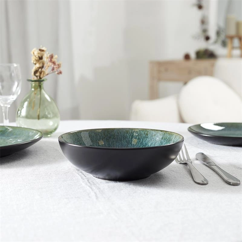 Elia v intenzivně zelené barvě je ideální volbou pro ty, kteří si cení originálních doplňků do jídelny. Moderní design a pečlivě tvarovaný profil zajišťují, že hluboký talíř nejen upoutá pozornost, ale také dokonale zapadá do aktuálních trendů interiérového designu. Jemný lesk keramiky dodává eleganci a zvýrazňuje vizuální stránku servírovaných jídel – od voňavé polévky až po lahodný zeleninový krém.