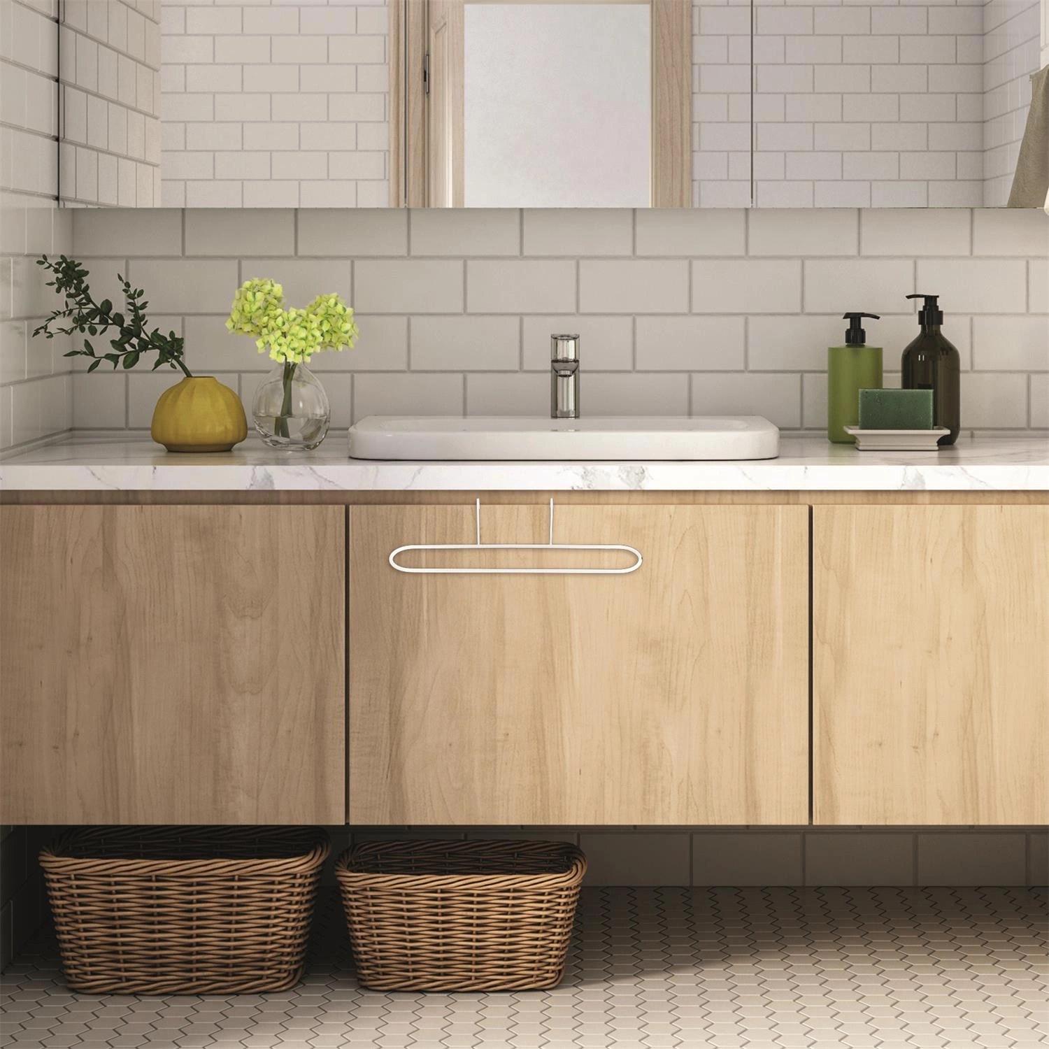 Držák na ručníky nebo kuchyňské utěrky nevyžaduje žádnou složitou montáž. Stačí jej zavěsit na přední stranu skříňky a už získáte další úložný prostor. Tento bílý držák na ručníky je tedy nejen praktický, ale také snadno použitelný. Maximální nosnost je 1 kg, což umožňuje zavěsit i těžší ručníky.