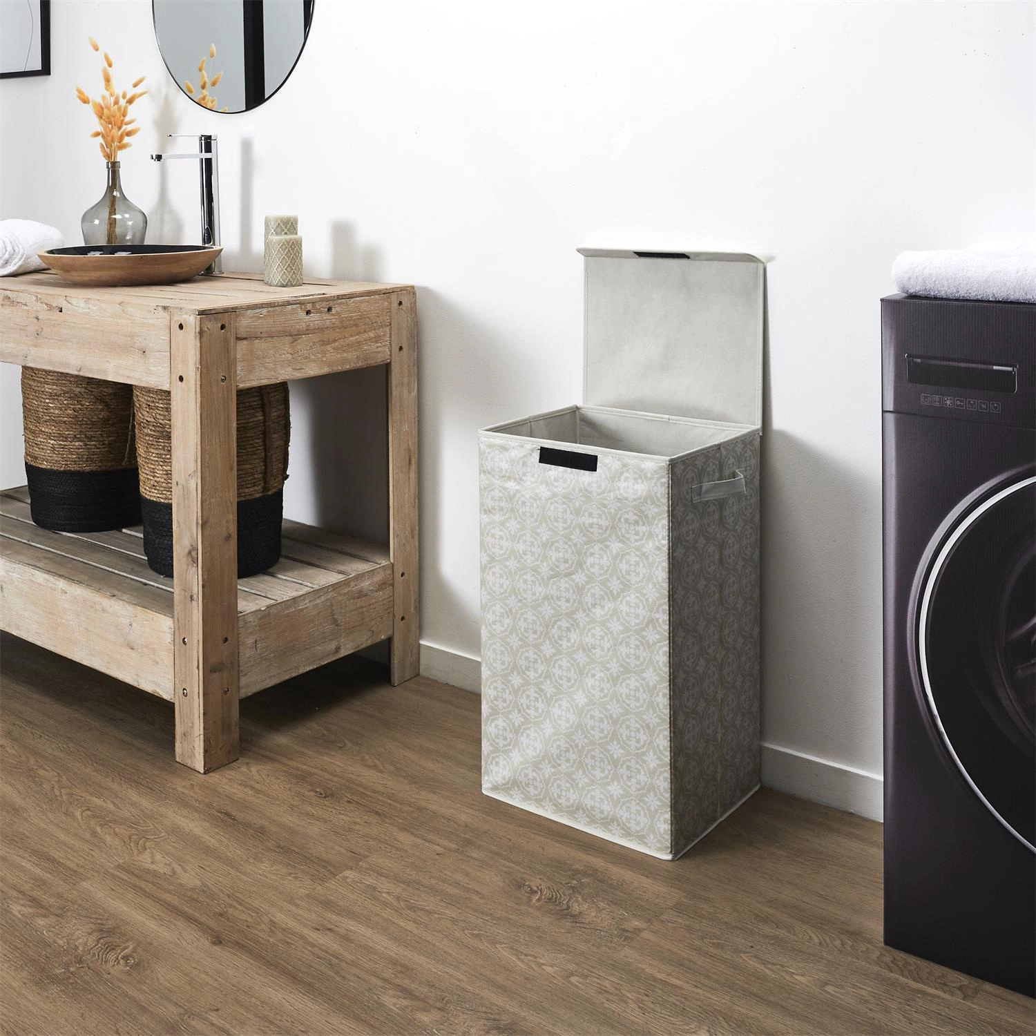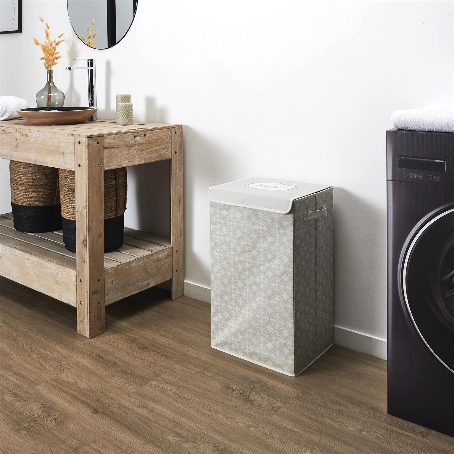 Intesi moderní koš na prádlo do koupelny je praktické a stylové řešení pro každodenní ukládání špinavého prádla. Vyrobený z odolné šedé textilie zaujme svým obdélníkovým tvarem a minimalistickým designem. Díky rozměrům 60×35×30 cm se skvěle hodí i do menších koupelen, přitom nabízí velkou kapacitu na prádlo.