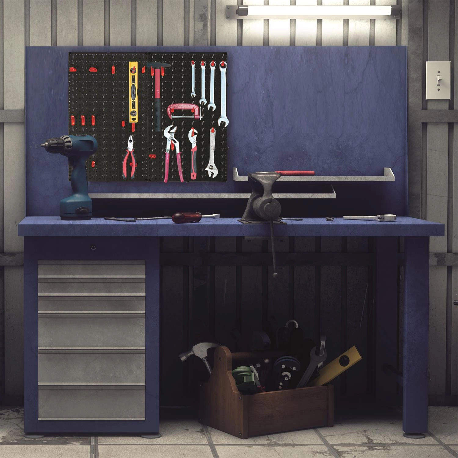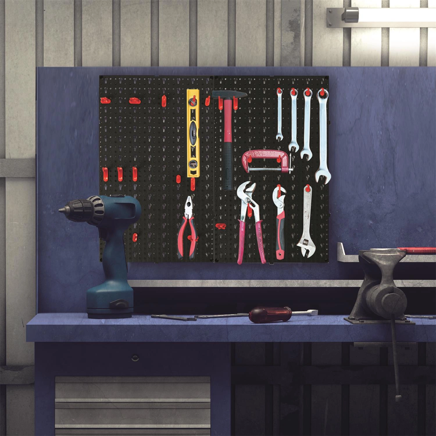 Díky malé výšce 1,7 cm panel nezabírá cenný prostor a montáž je rychlá a jednoduchá. Praktický systém zavěšení umožňuje přizpůsobit rozložení nářadí podle vašich potřeb. Nástěnný věšák na nářadí využijete nejen v garáži, ale i ve sklepě, komoře nebo technické místnosti.