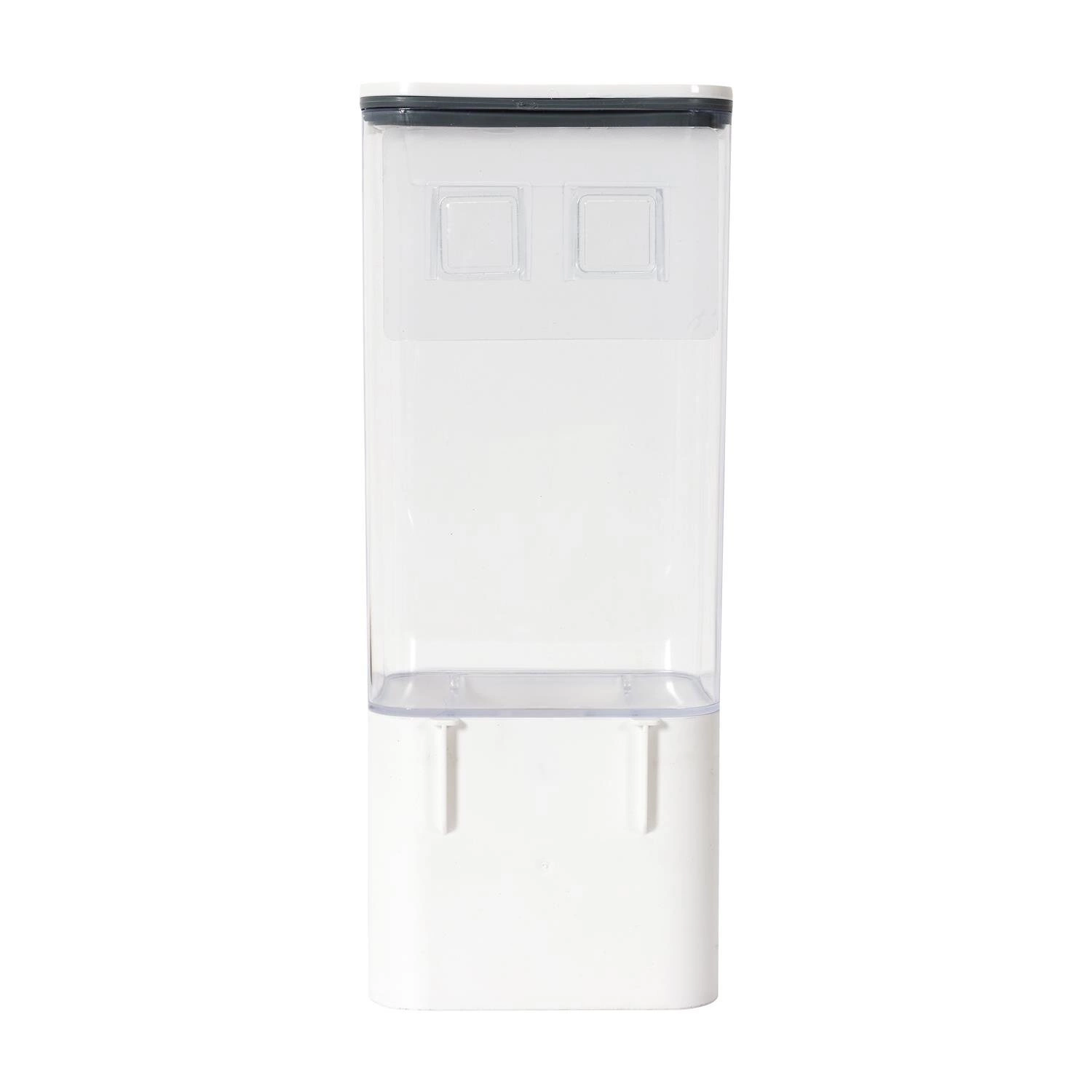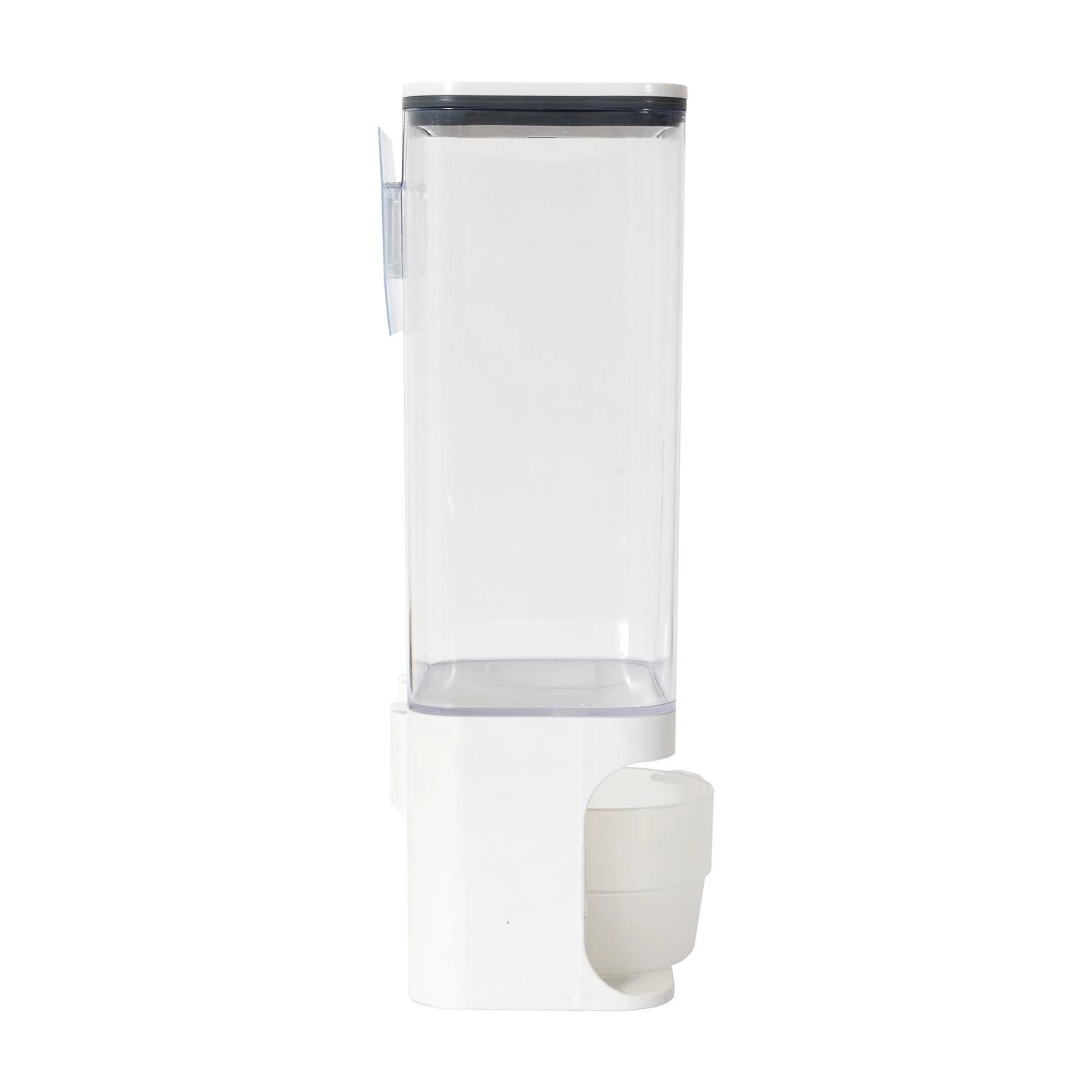 Dávkovač značky Intesi je vyroben z plastu, což zaručuje jeho trvanlivost a odolnost proti poškození. Průhledná barva umožňuje snadnou identifikaci obsahu, zatímco bílé prvky dodávají moderní nádech. Dávkovač má také praktické háčky, které umožňují jeho připevnění na stěnu a šetří tak místo na kuchyňské lince.