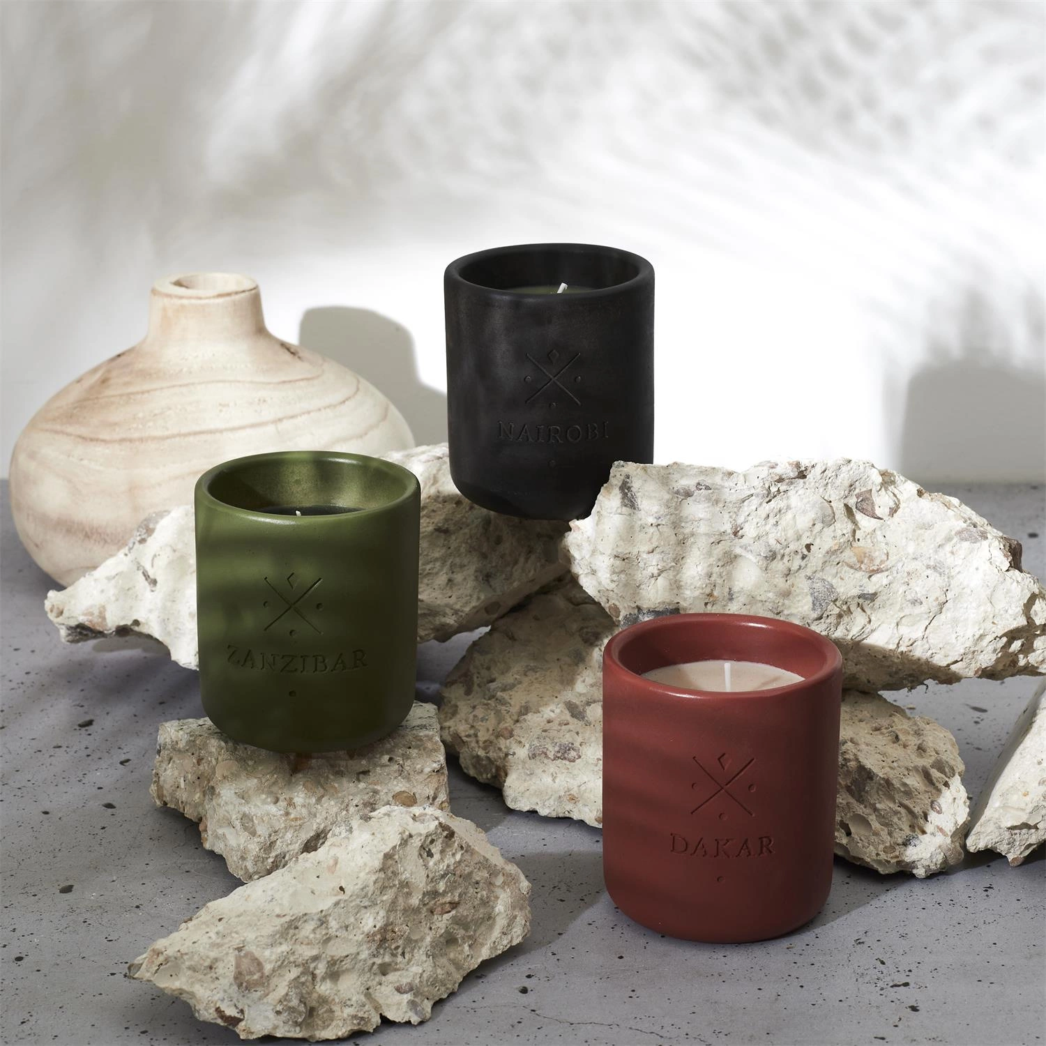 Earth Nairobi je vonná svíčka, která zaujme originálním designem. Šedé cementové tělo jí dodává industriální nádech, díky čemuž je skvělou volbou pro milovníky moderního a minimalistického stylu. Kulatý tvar a neutrální barvy umožňují snadné sladění s ostatními dekoracemi a vytvářejí harmonicky laděný interiér.