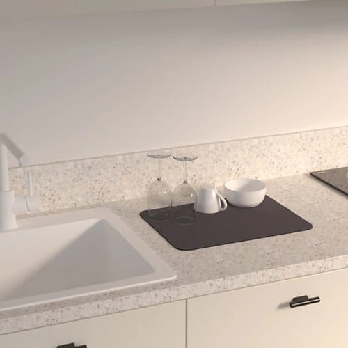 Šedá, decentní barva odkapávací podložky skvěle ladí s moderními trendy v interiérovém designu. Obdélníkový tvar a tenké provedení (pouze 0,3 cm tloušťky) zajišťují elegantní vzhled bez zbytečného zabírání místa na lince. Ideální volba jak do malých kuchyní, tak i prostorných kuchyňských koutů – vždy po ruce, když potřebujete rychle vysušit nádobí.