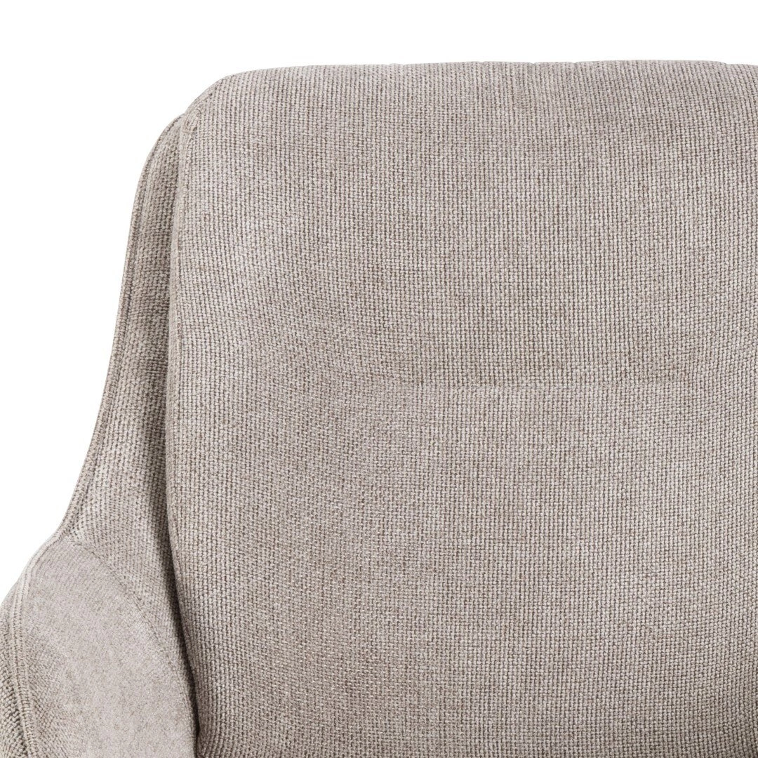Čalouněná židle Carrie je stvořená pro ty, kteří ocení nejen atraktivní vzhled, ale také každodenní komfort používání. Měkký sedák potažený příjemnou béžovou látkou přímo vybízí k odpočinku, zatímco praktické područky a ergonomicky tvarované opěradlo poskytují podporu a pohodlí při posezení u stolu. Otočná funkce židle umožňuje snadný přístup ke stolu, což oceníte při rodinných večeřích i společenských setkáních doma.